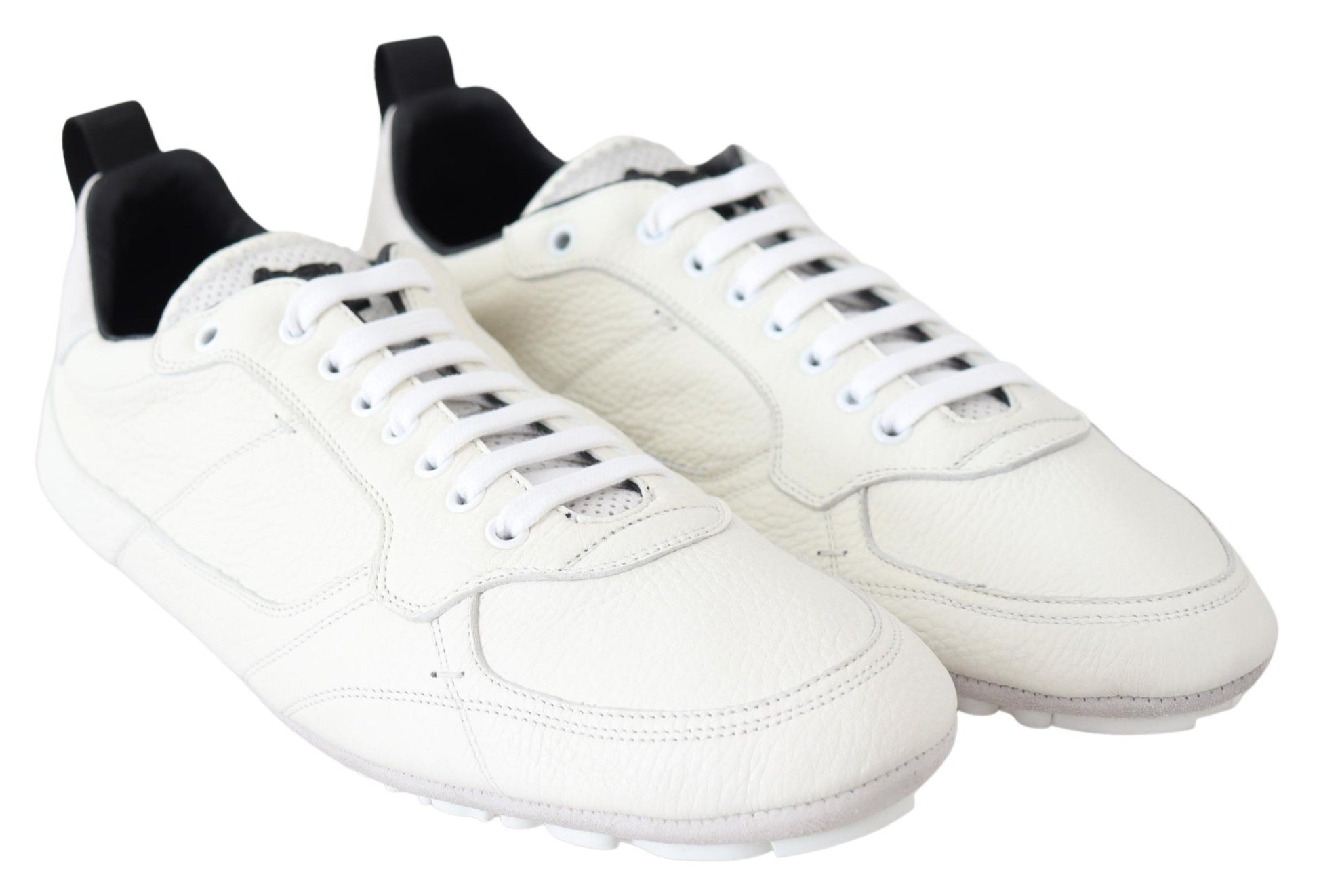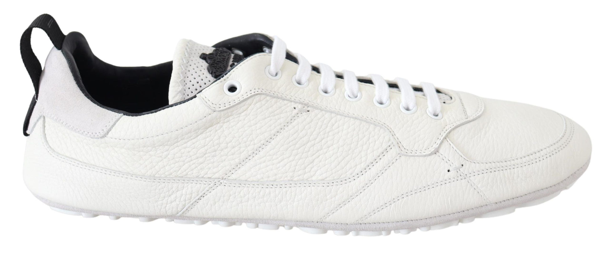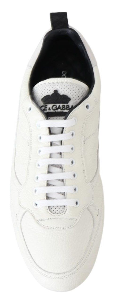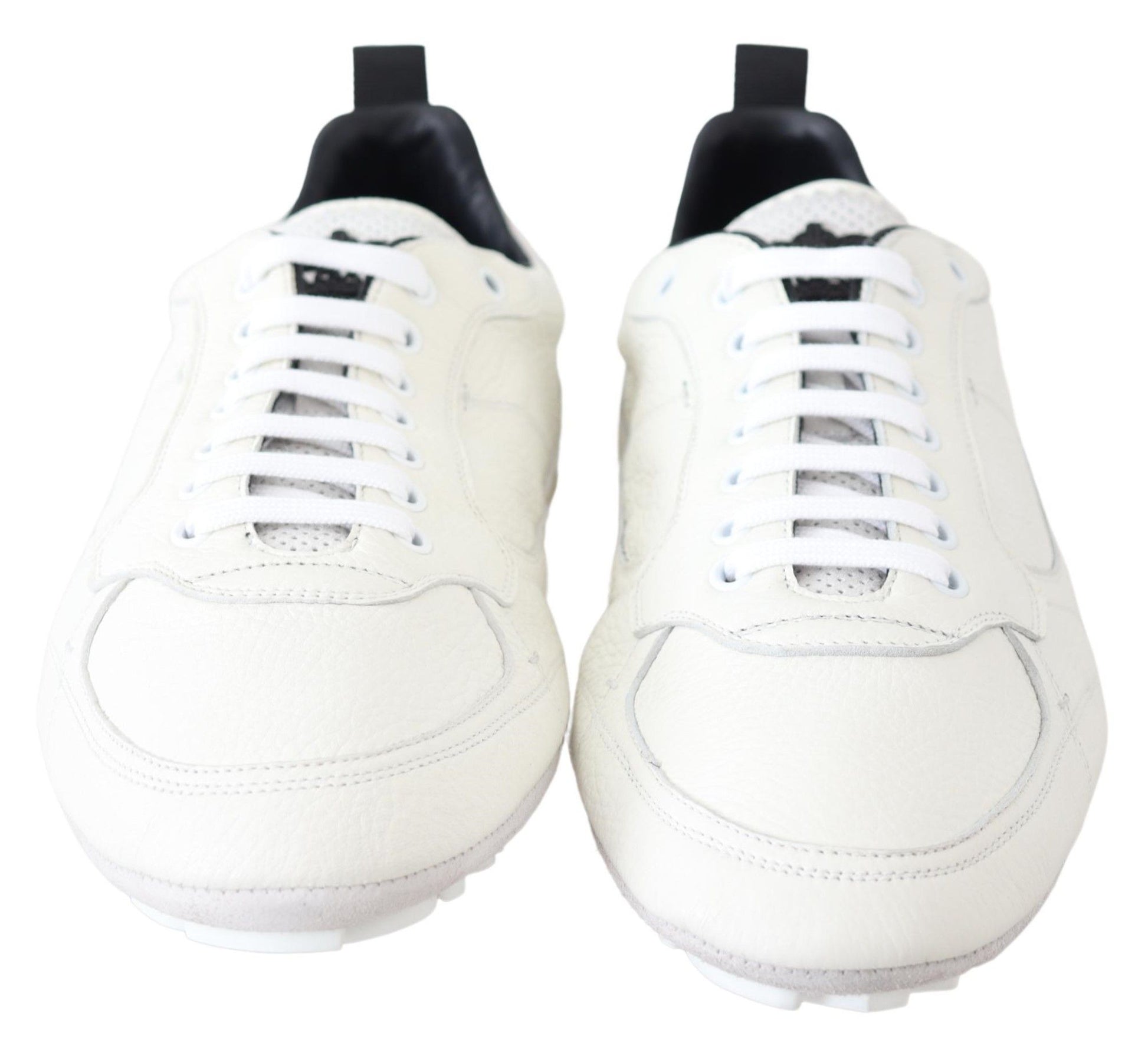 Step into luxury with these Dolce & Gabbana Men’s Sneakers. Perfect for the discerning gentleman, these shoes boast a pristine white leather construction, paired with a durable rubber sole for superior comfort and longevity. Crafted in Italy, these sneakers are not just shoes but a testament to high-end craftsmanship and unwavering style.