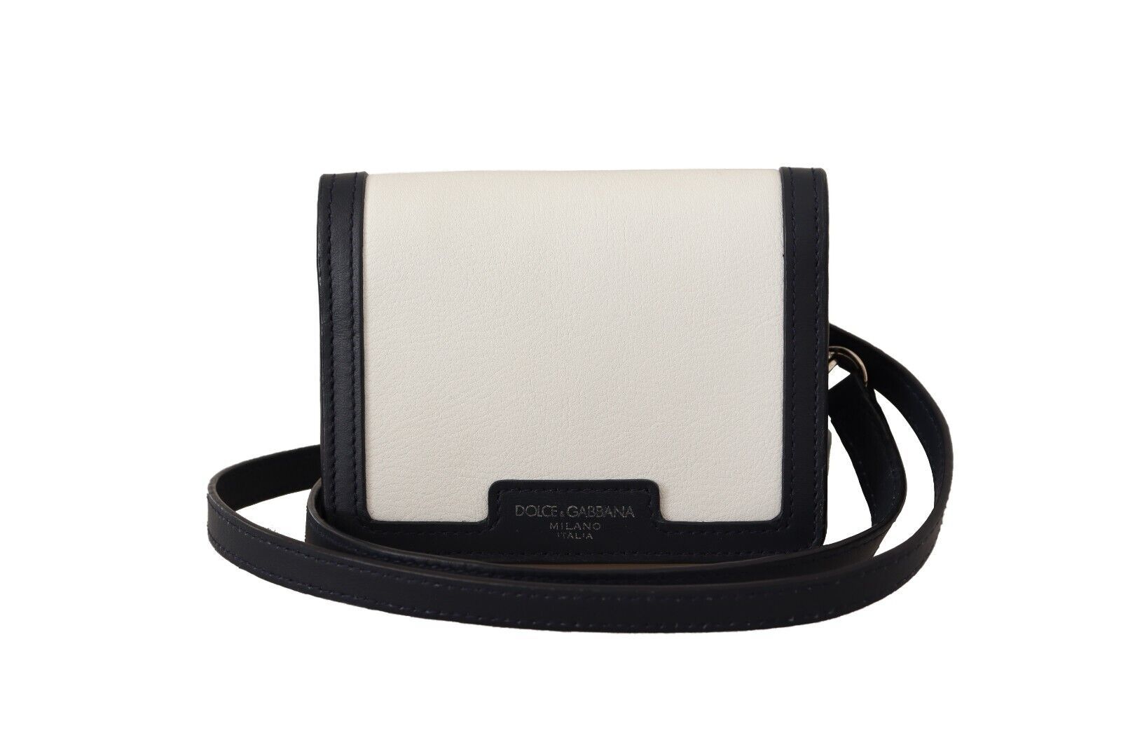 Discover the epitome of luxury with this stunning bifold wallet from the esteemed house of Dolce & Gabbana. Exquisitely crafted from 100% genuine leather, this piece is not just a wallet; it’s a statement of elegance and sophistication. Ideal for those who appreciate the finer things in life, it features a sleek white exterior, complemented by a practical shoulder strap and a secure flap closure for effortless style on the go. Perfect for adorning any outfit with a touch of Italian craftsmanship.