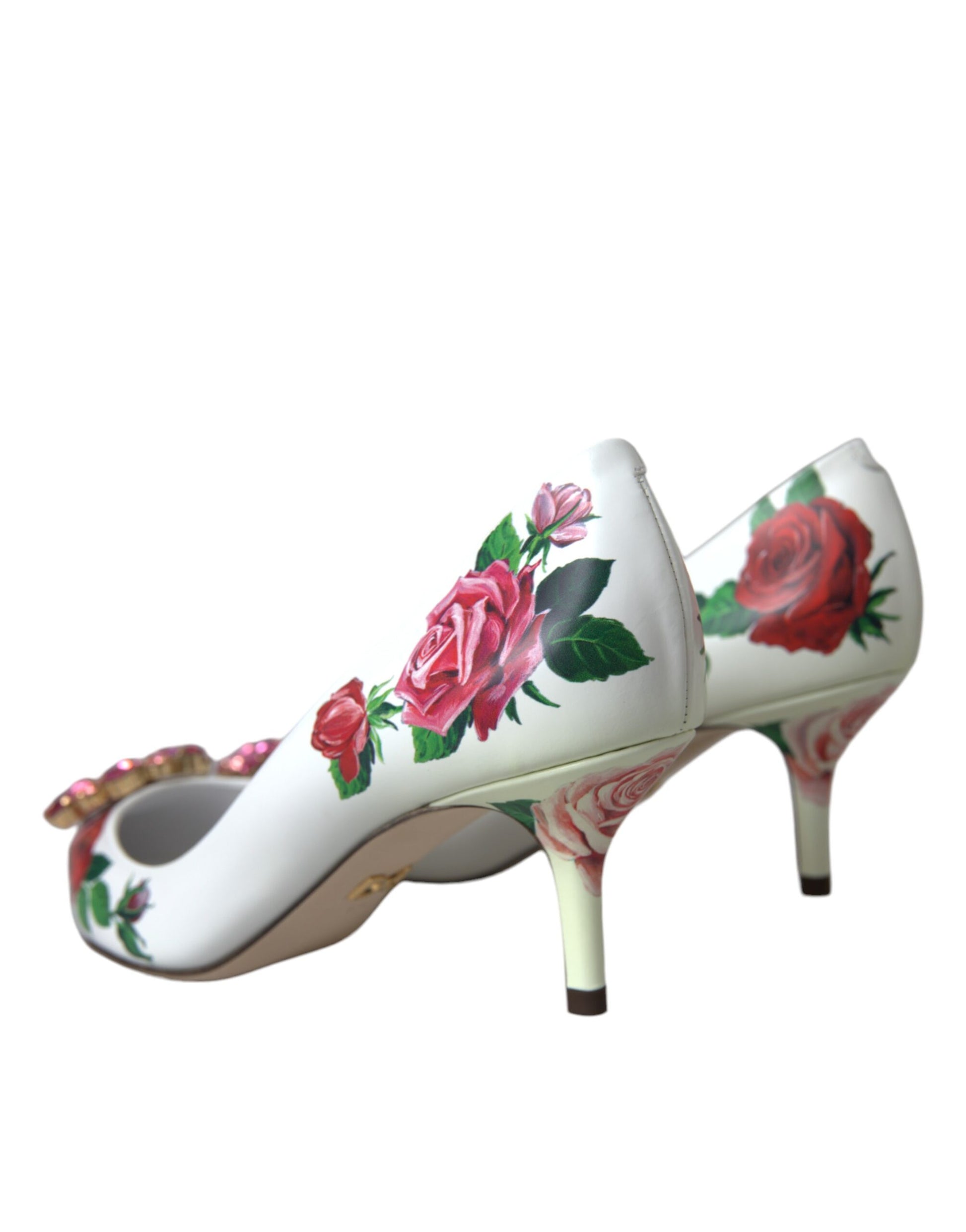 White Leather Roses Crystal Bellucci Pumps Shoes