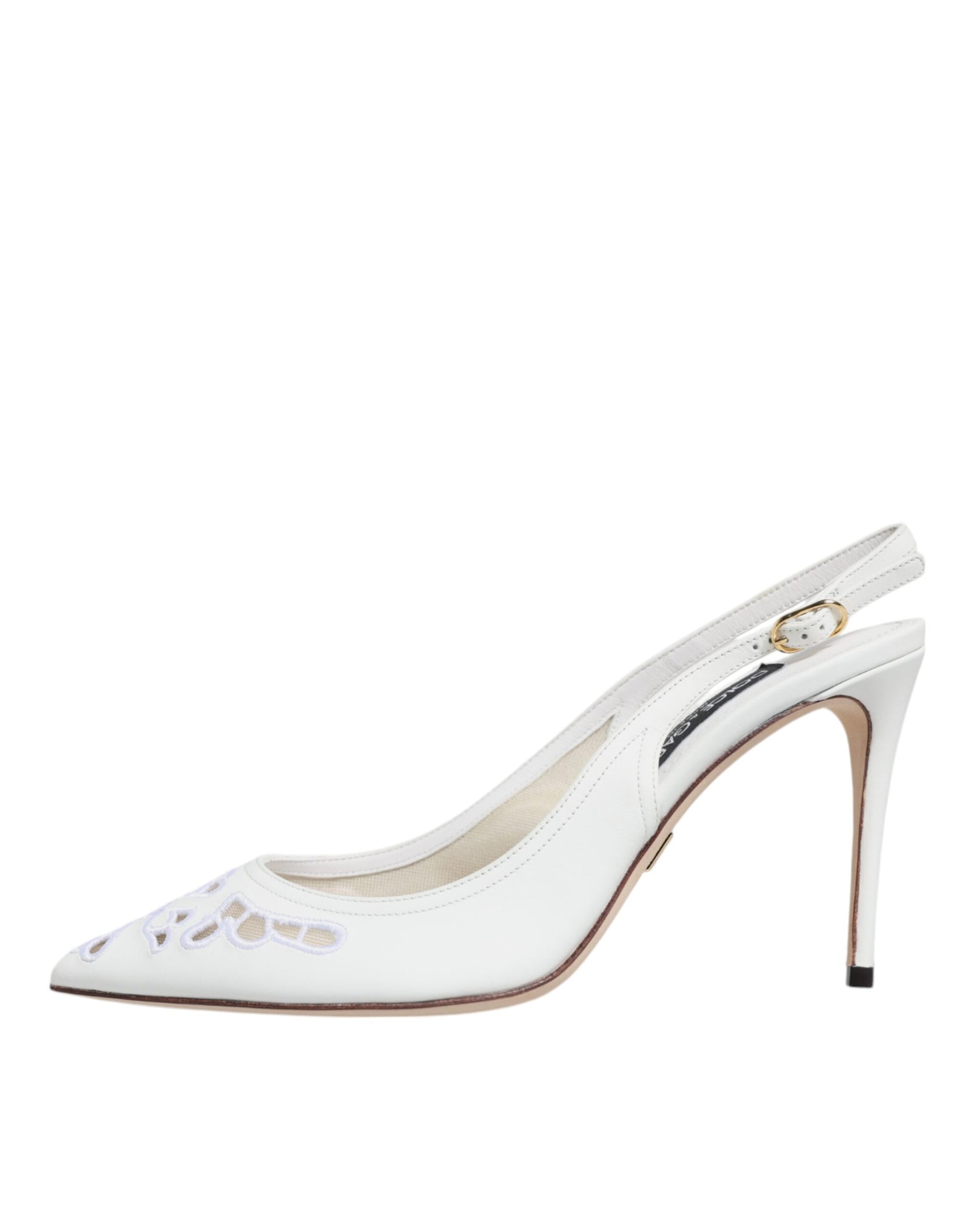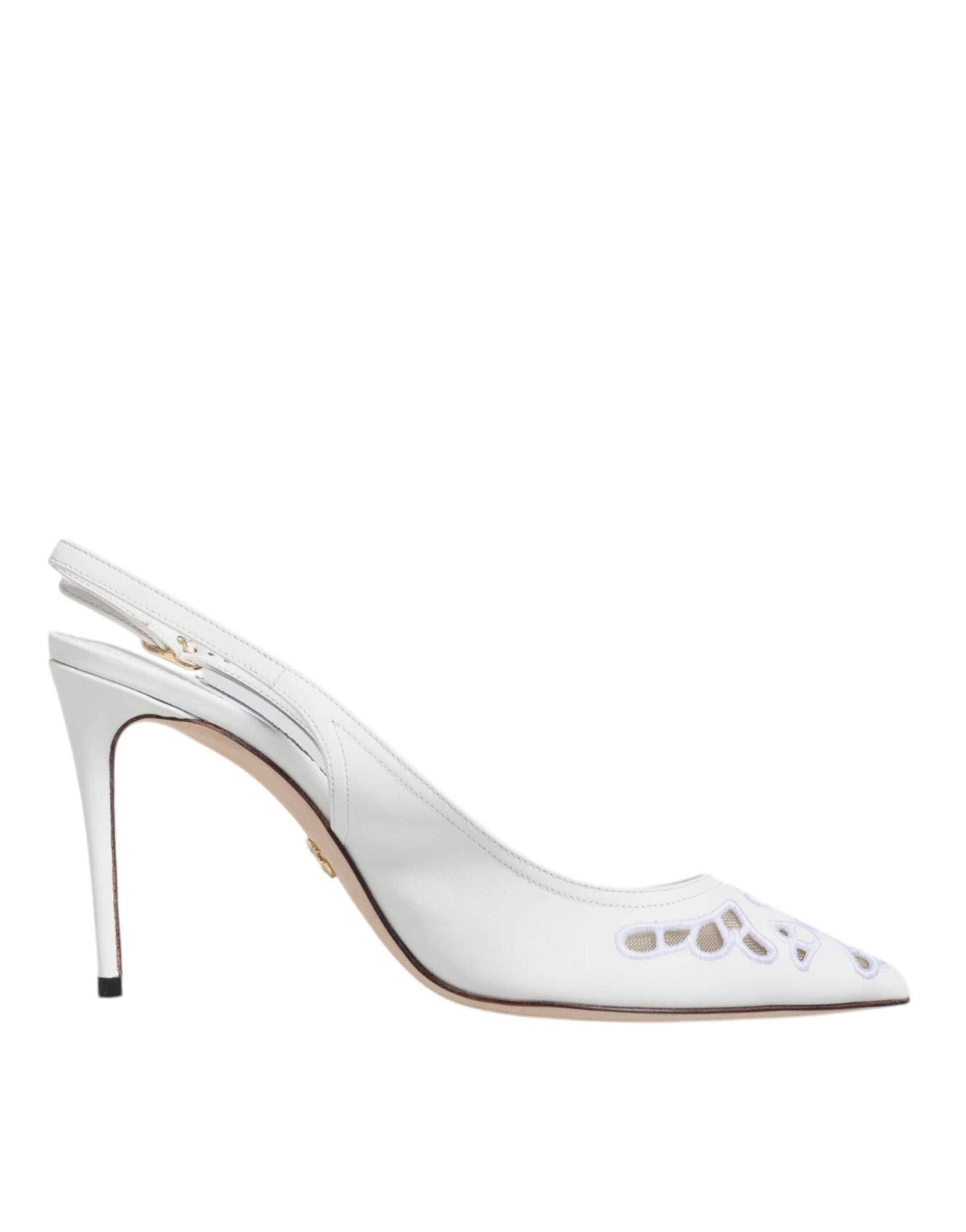 White Leather Stiletto Heels Slingback Shoes
