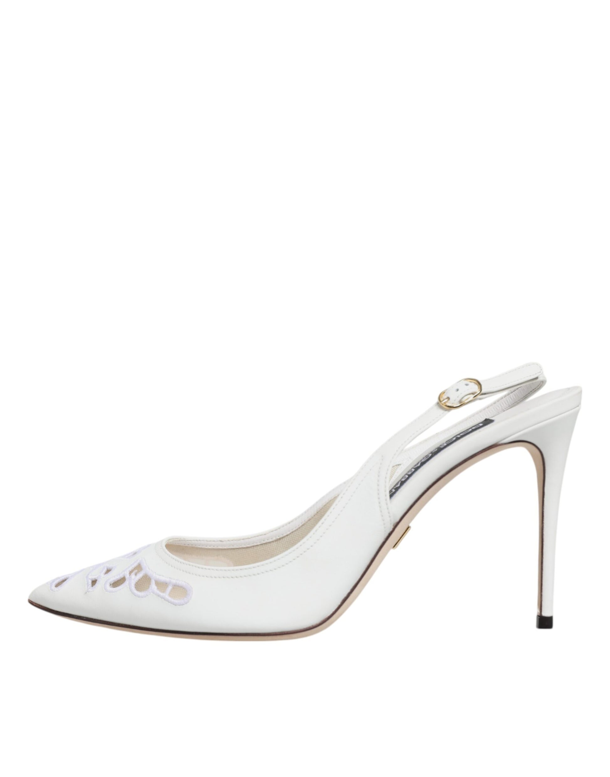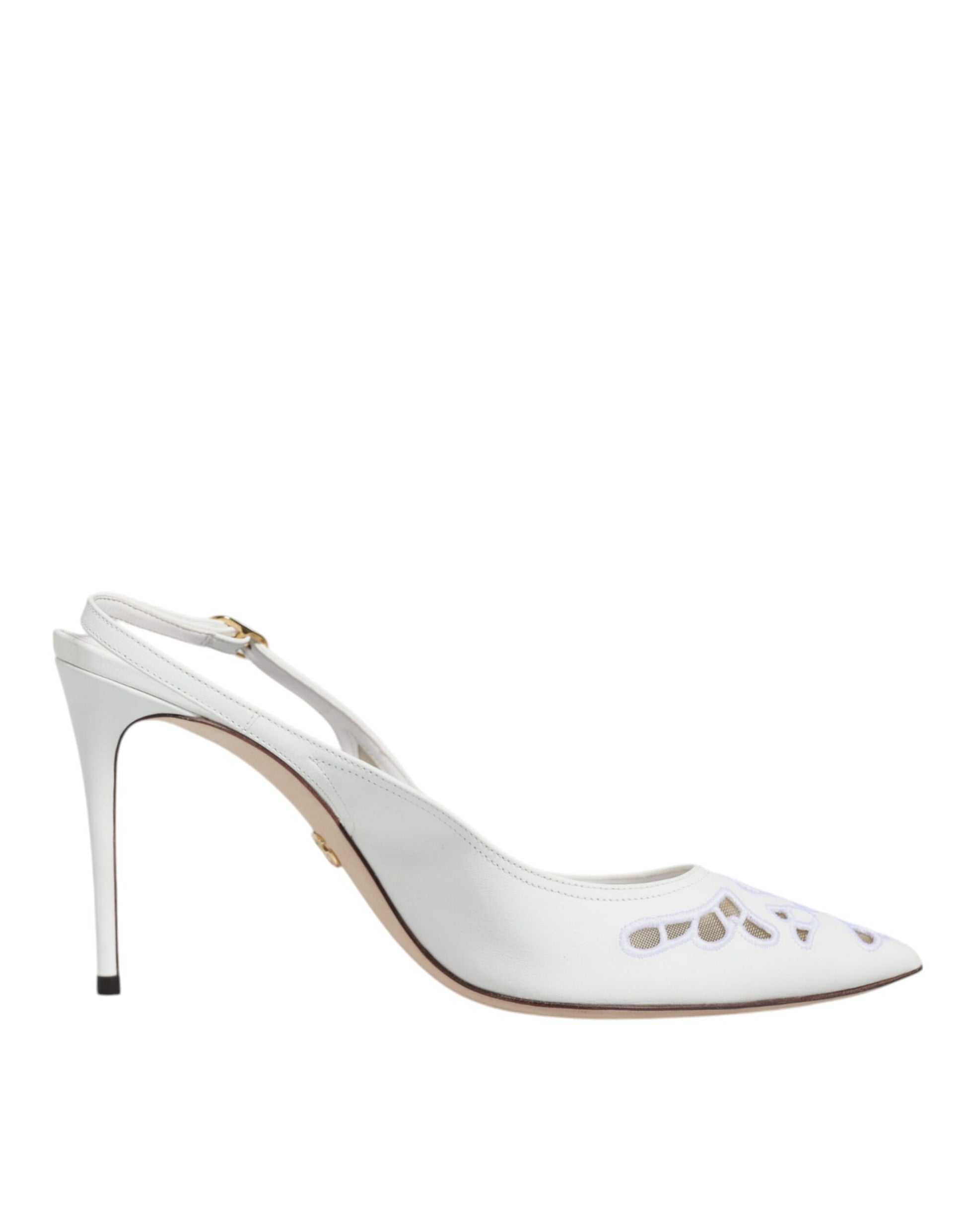 White Leather Stiletto Heels Slingback Shoes