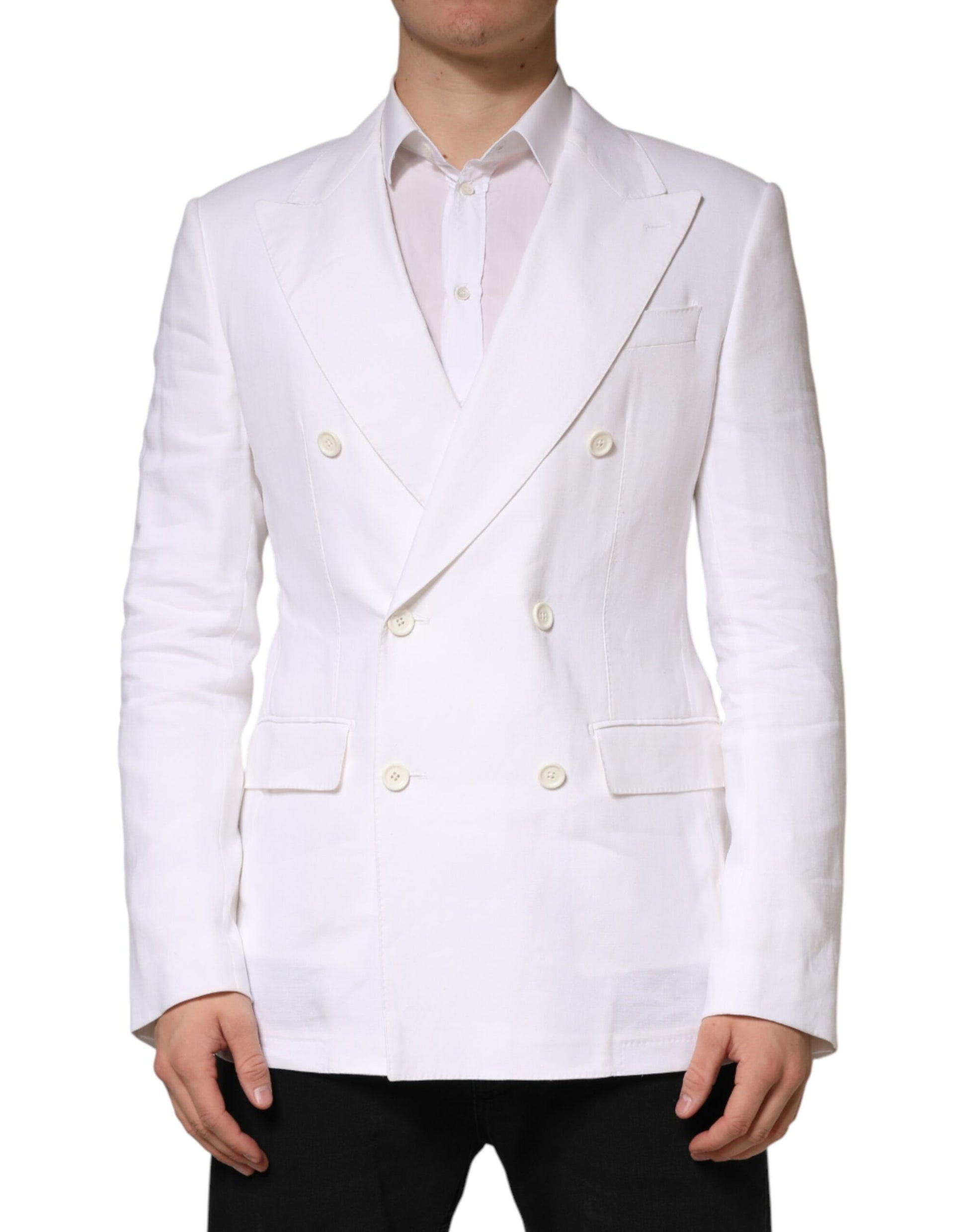 White Linen Double Breasted 2 Button Blazer
