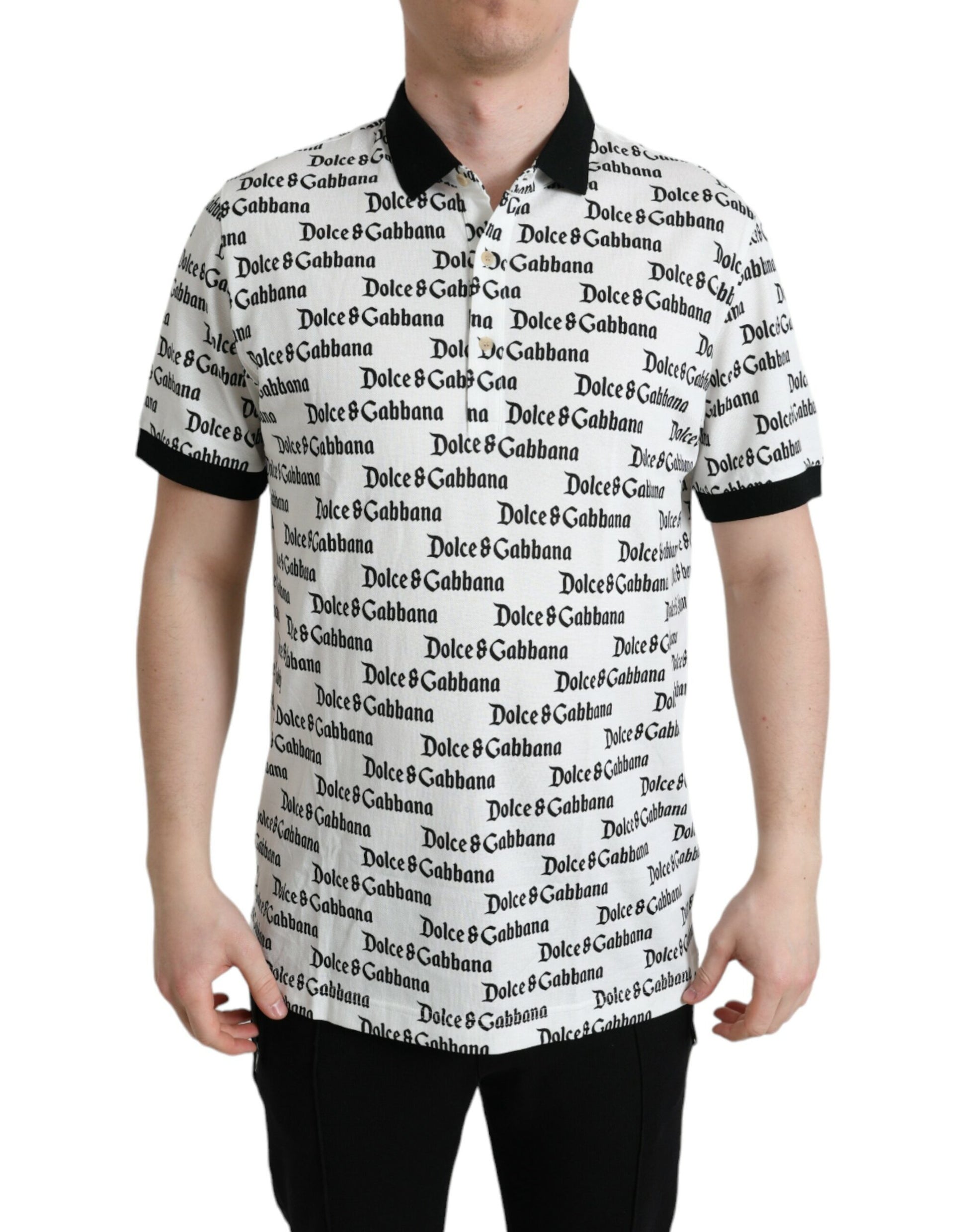 Indulge in the epitome of luxury with this striking white polo t-shirt from Dolce & Gabbana. Crafted with exquisite attention to detail, this 100% authentic piece boasts a smart collared neck, short sleeves, and is punctuated with an elegant black logo pattern for an added touch of sophistication. Ideal for an upscale casual look, this Italian-made t-shirt is a testament to the brand’s commitment to high quality and style.
