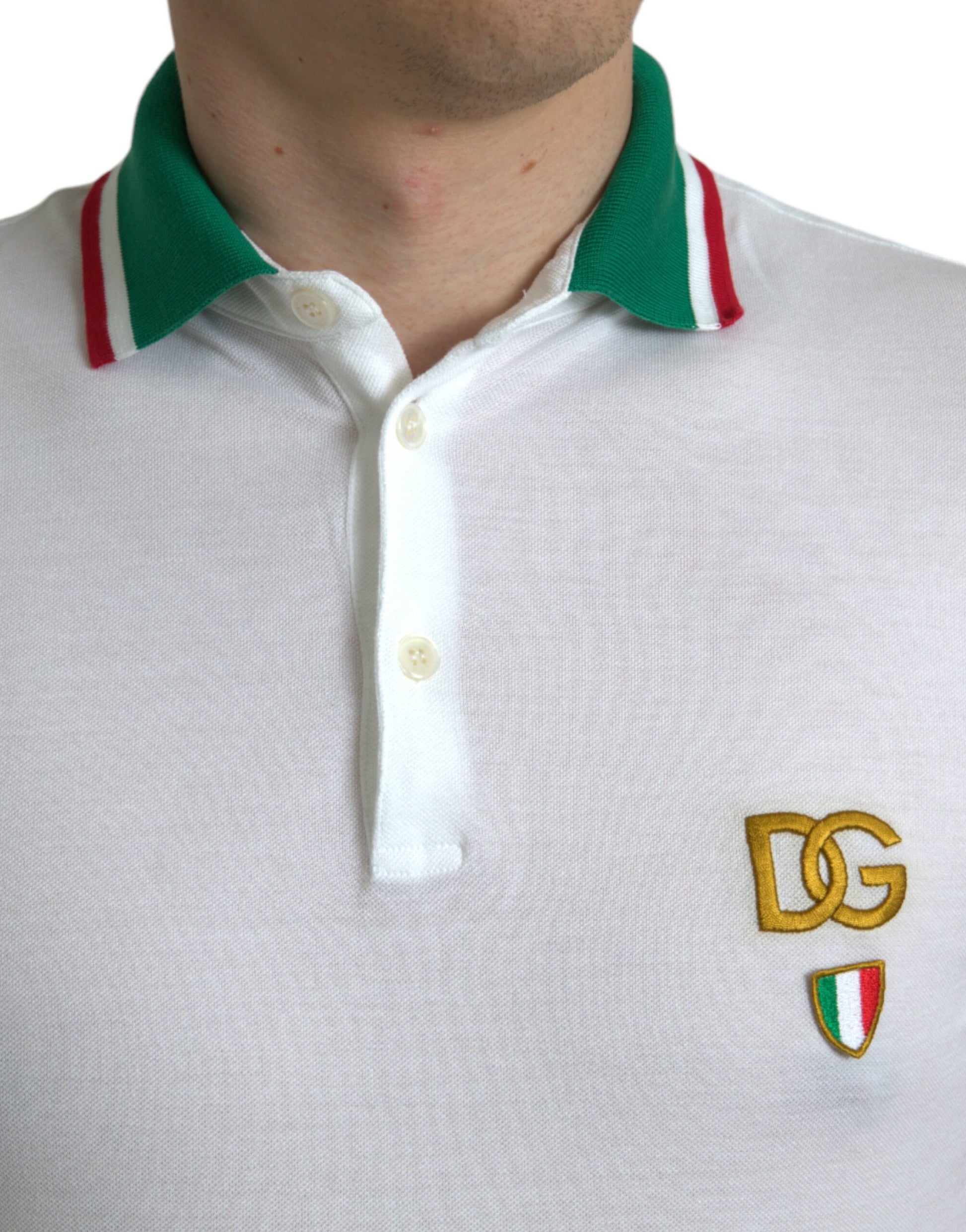 Elevate your casual style with this absolutely stunning, 100% Authentic Dolce & Gabbana cotton polo t-shirt. This white collared tee, adorned with the iconic DG logo, blends comfort with sophistication. Made in Italy, it’s the perfect addition to the modern man’s wardrobe.