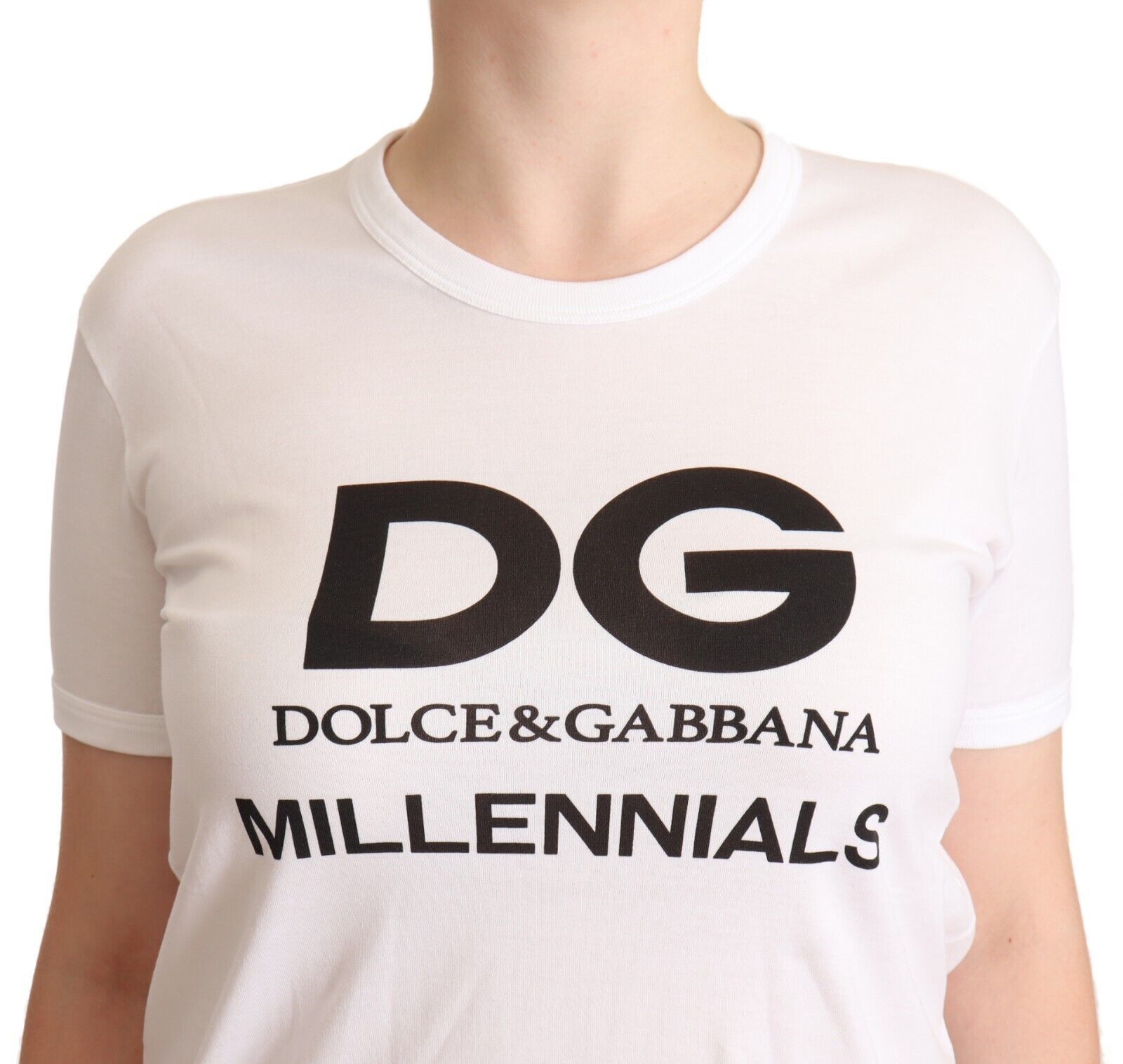 Introduce a touch of Italian elegance to your wardrobe with this gorgeous, brand new crewneck tee. Crafted from the highest-quality materials, it features a distinctly luxurious look and feel, perfect for fashion-forward individuals. Boasting a crisp white hue and a bold printed logo, it exudes sophistication and style synonymous with Dolce & Gabbana. This top is a versatile piece that offers both comfort and fashion appeal.