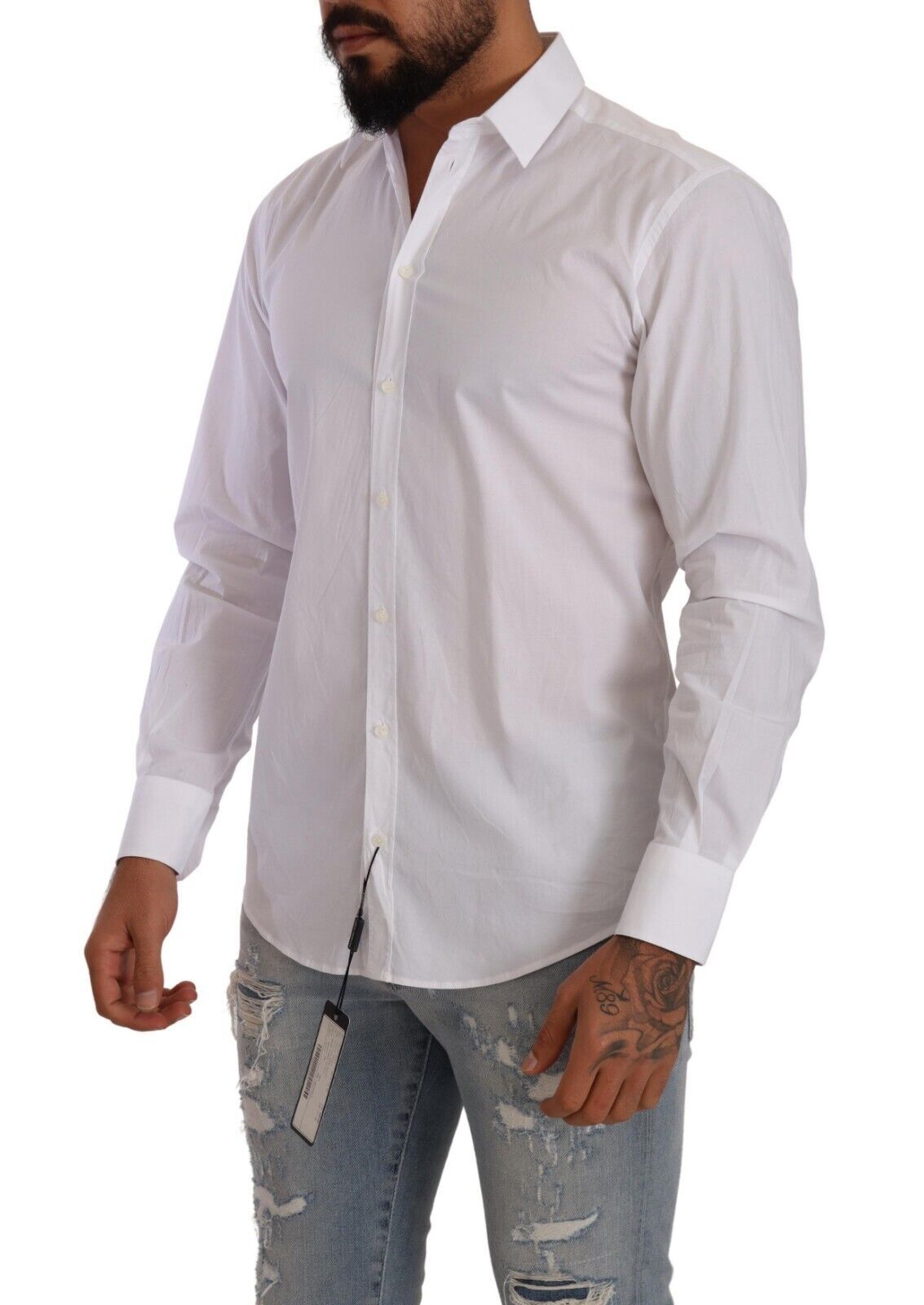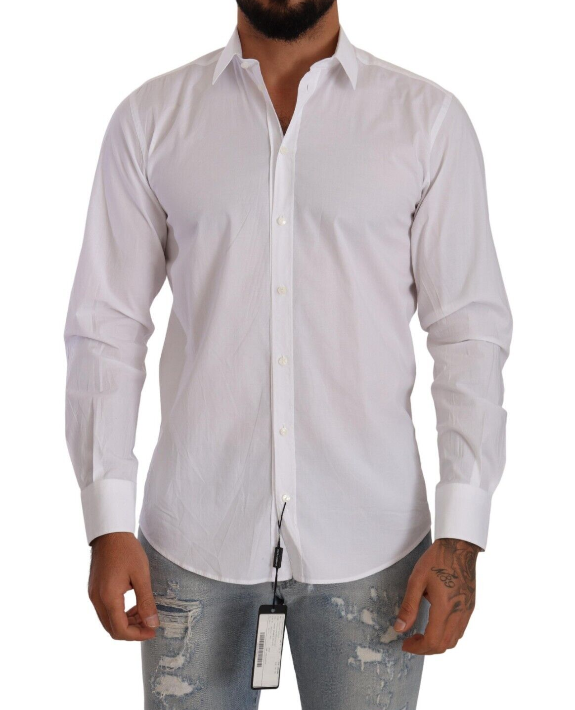 Experience the epitome of Italian sophistication with our Dolce & Gabbana Martini dress shirt. Perfectly crafted for the modern man, this slim fit shirt is a versatile addition to any wardrobe, seamlessly blending classic style with a touch of stretch for comfort.