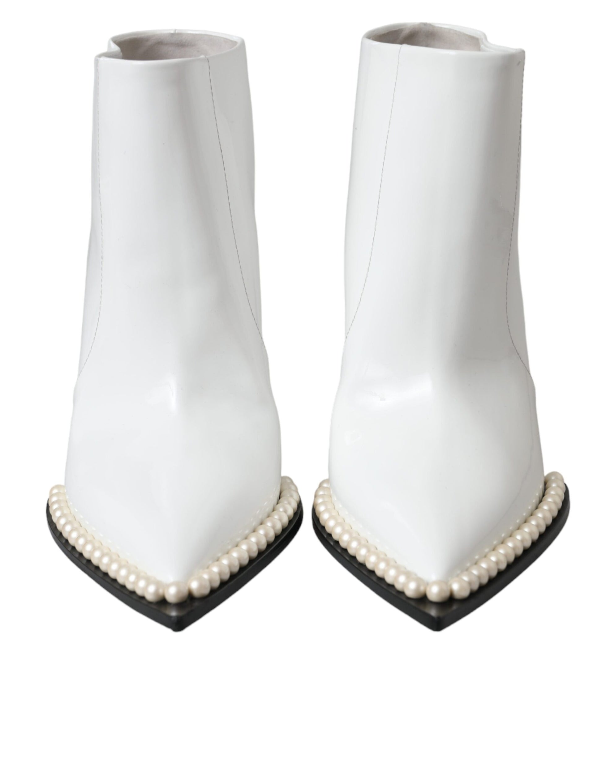 White Pearl Leather Pumps Heels Boots Shoes