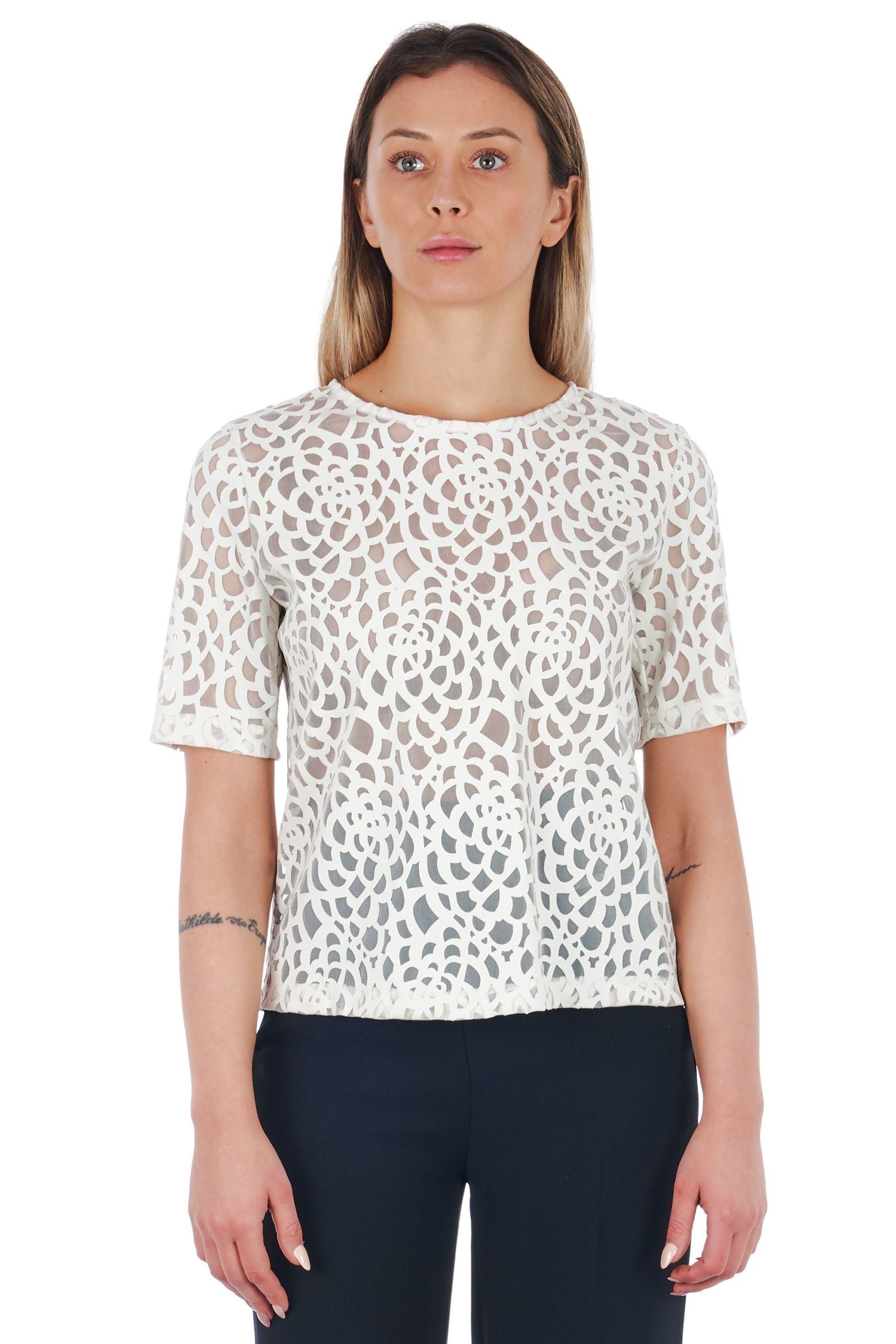 Experience the cutting-edge of high fashion with Frankie Morello’s short-sleeved blouse, a statement piece for the bold and style-conscious. This exquisite top features a striking perforated eco-leather design, ensuring you stand out with its innovative texture and sophisticated silhouette. Finished with a sleek back zip closure, this top is a testament to refined craftsmanship and fashion-forward thinking. Embrace the future of fashion with Frankie Morello.