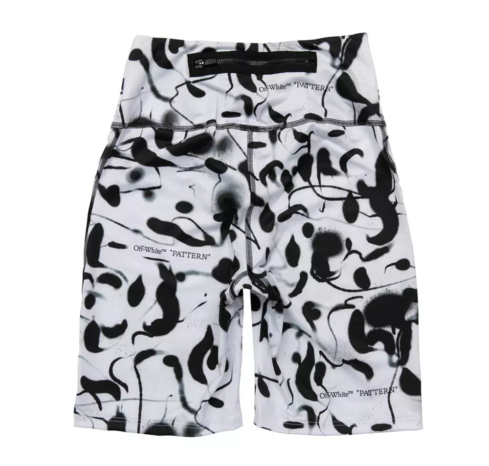 Embrace bold patterns with these chic monochrome printed short leggings that promise style and comfort. Featuring an elasticized waistband for a snug fit, these leggings are perfect for your trendy workout sessions or adding an edge to your daily ensembles.