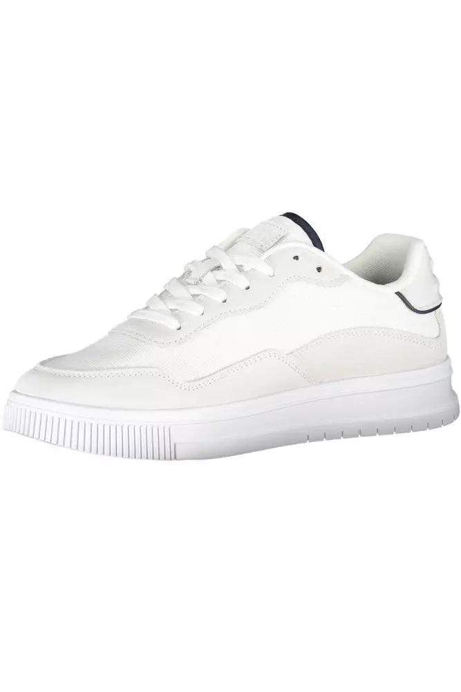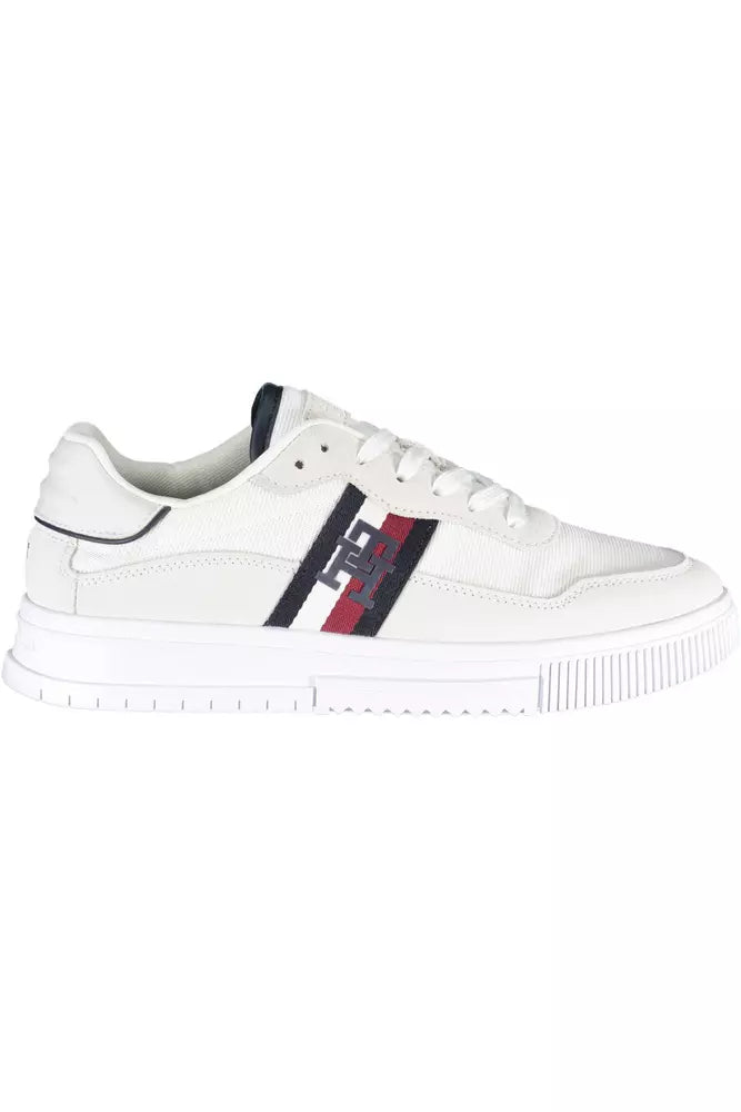Elevate your game with a touch of sophistication in these Tommy Hilfiger sneakers. Perfect for the style-conscious athlete, these shoes feature a sleek white color palette, highlighted by contrasting details that pop. Iconic logo embellishments add a signature touch to this eco-friendly design, crafted with a commitment to sustainability using 60% recycled polyester. From the streets to the track, these sneakers promise both comfort and style.