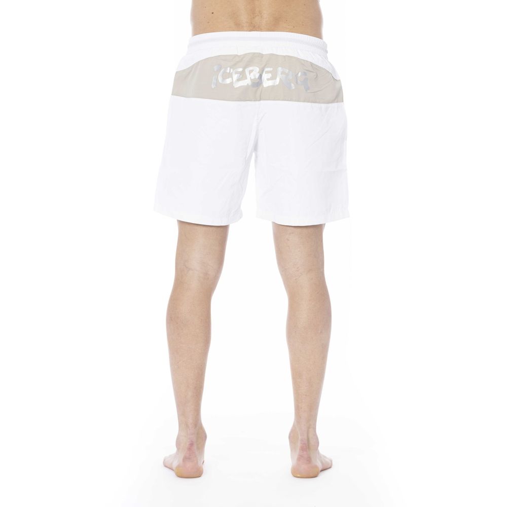 Dive into the epitome of poolside chic with Iceberg’s sleek swim trunks. Perfect for fashion-forward swimmers, these trunks feature a crisp white hue, accented by signature back stripes proudly flaunting the Iceberg logo. Crafted for comfort and style, the elastic waistband with a drawstring ensures a perfect fit, while side pockets add practicality to your swim escapades. Made from high-quality polyester, these trunks deliver both durability and a quick-dry experience, ensuring you transition from water to land effortlessly and in vogue.