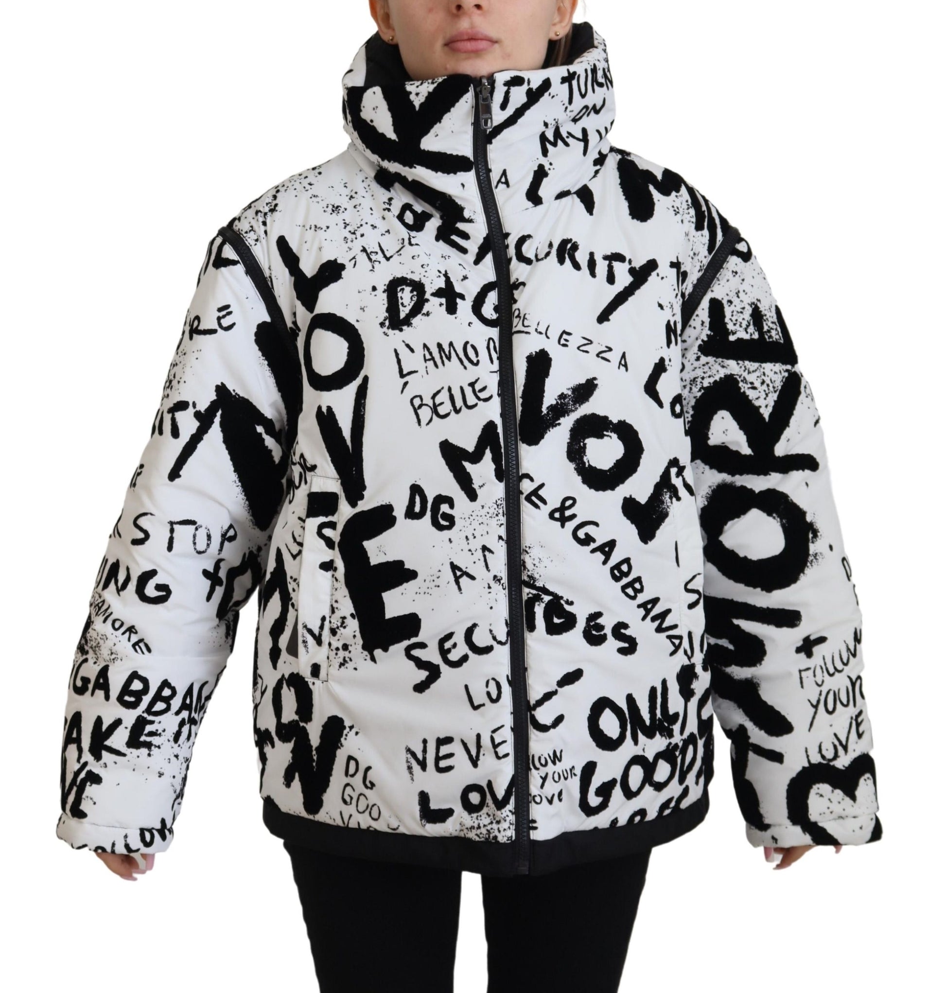Step out in style with this stunning Dolce & Gabbana full zip jacket, brand new with tags, and flaunt its exquisite graphic print in bold black and white. Tailored for a regular fit, this piece combines impeccable Italian craftsmanship with a modern edge, featuring a smooth front zip closure and distinctive logo details. Perfect for elevating your wardrobe with an exclusive touch of high fashion.