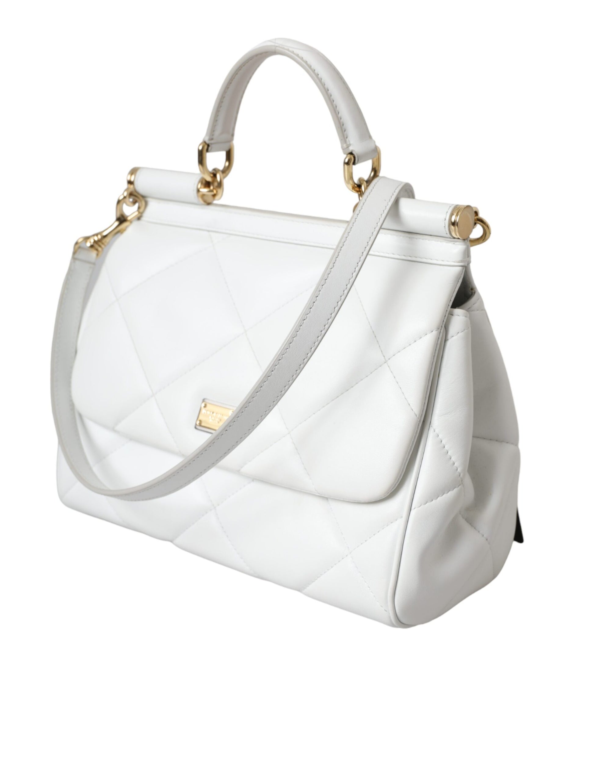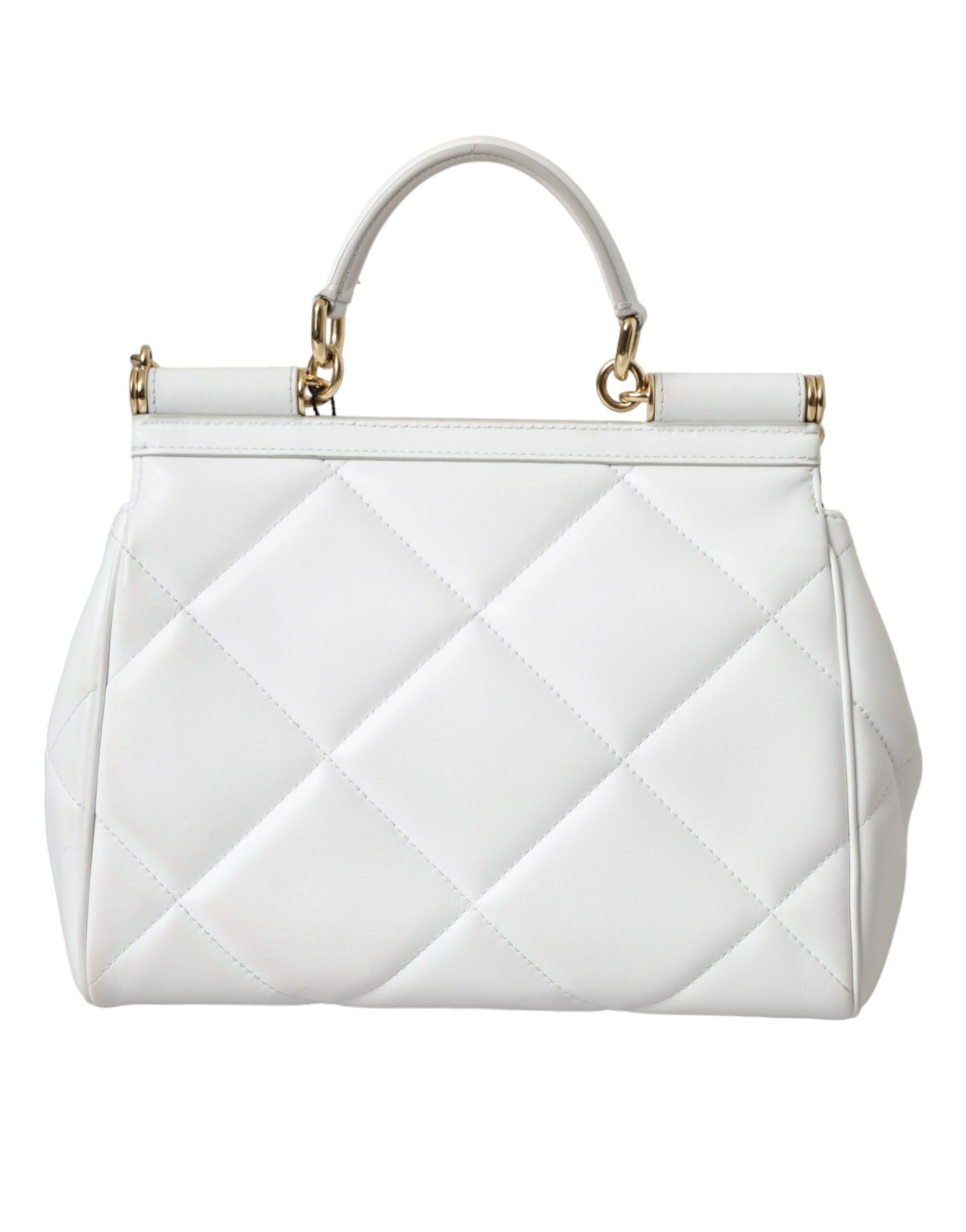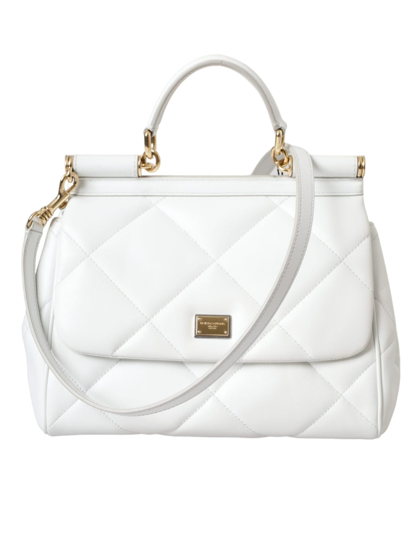 White Quilted Leather SICILY Hand Shoulder Purse Satchel Bag