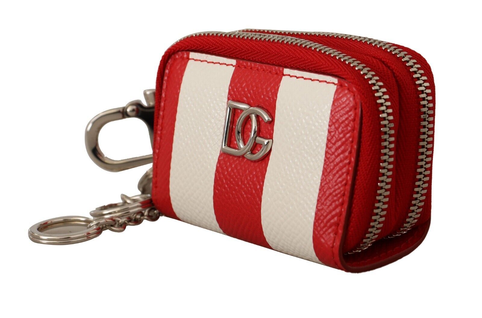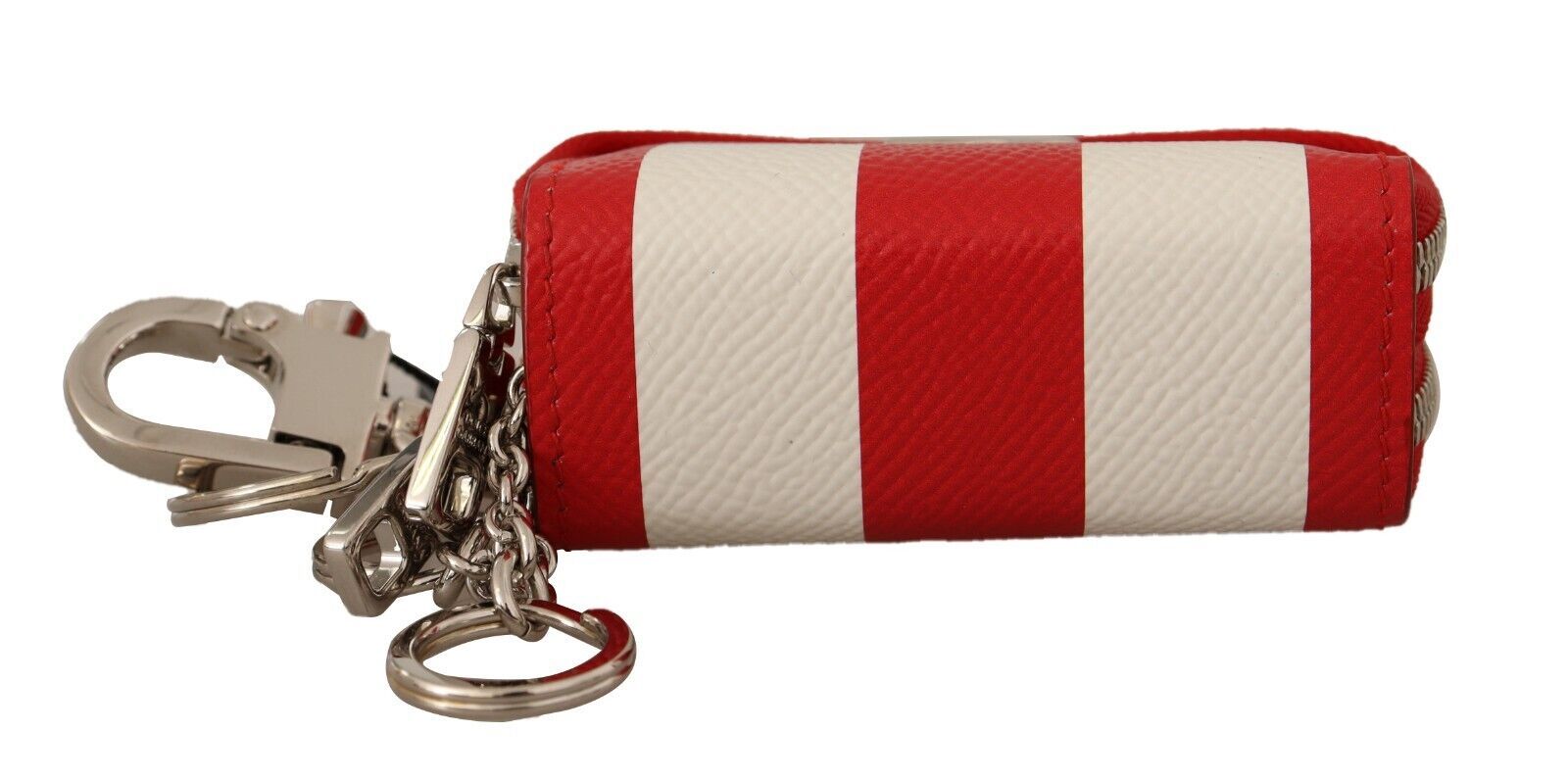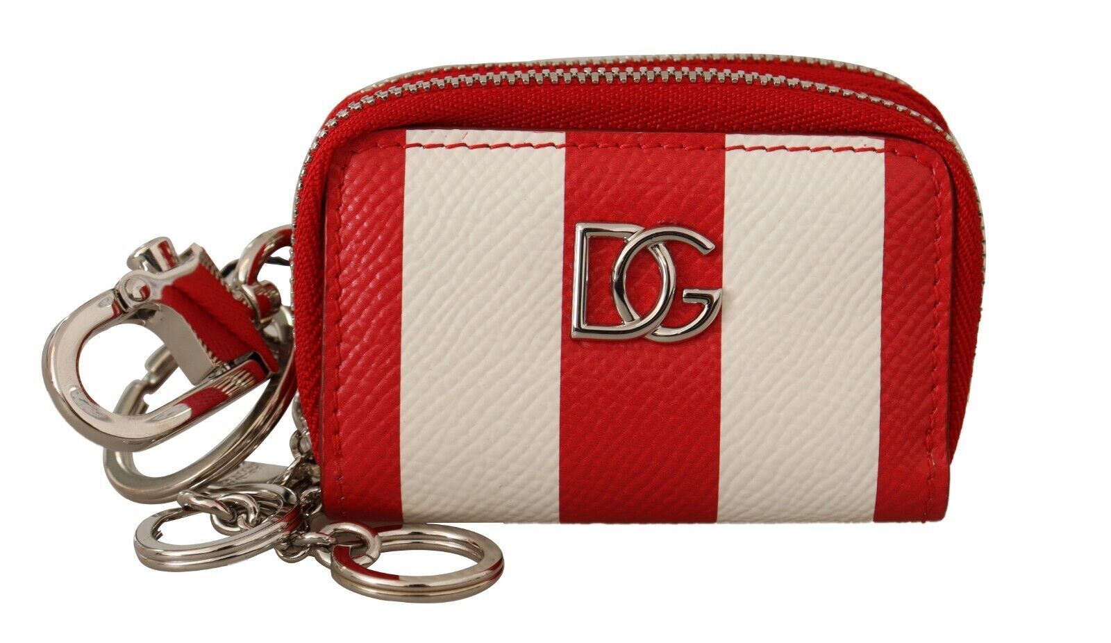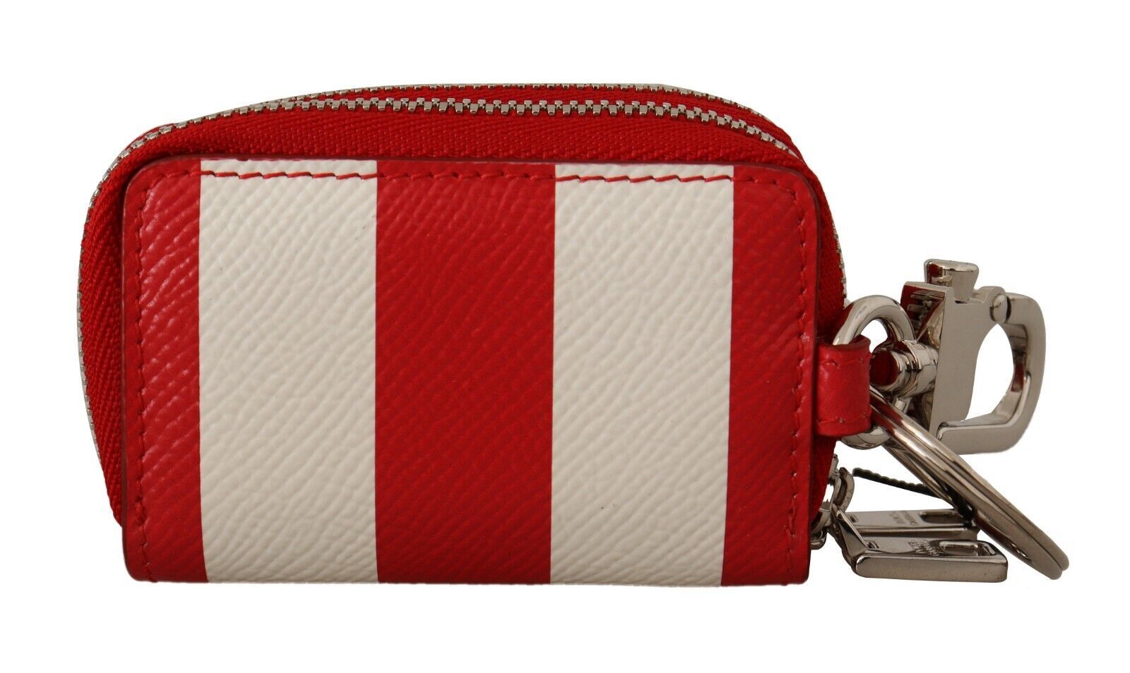 Indulge in the luxury of a Dolce & Gabbana leather coin purse, perfect for carrying your change in style. This gorgeous, brand new accessory features a chic striped pattern, complemented by a pristine white color accentuated with bold red. Compact and secure with a zipper closure, this purse ensures your coins are always within reach. It’s lovingly made in Italy, manifesting the excellent craftsmanship and high-end quality associated with the brand.