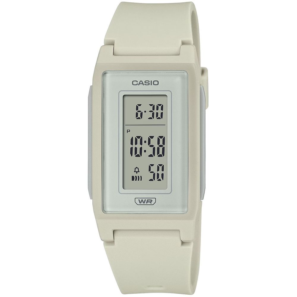 Type of mechanism: QUARTZ. Display: DIGITAL. Material Of Case: RESIN. Colour Of Case: WHITE. Material Of Bracelet: RESIN. Colour Of Bracelet: WHITE. Dial Colour:SILVER. Glass type: ACRYLIC. Clousure: BUCKLE. Water resistence: NO. Diameter dial: 39 MM. Special Functions:VINTAGE RETRO - MULTIFUNCTION - RECYCLED BIOMASS PLASTIC