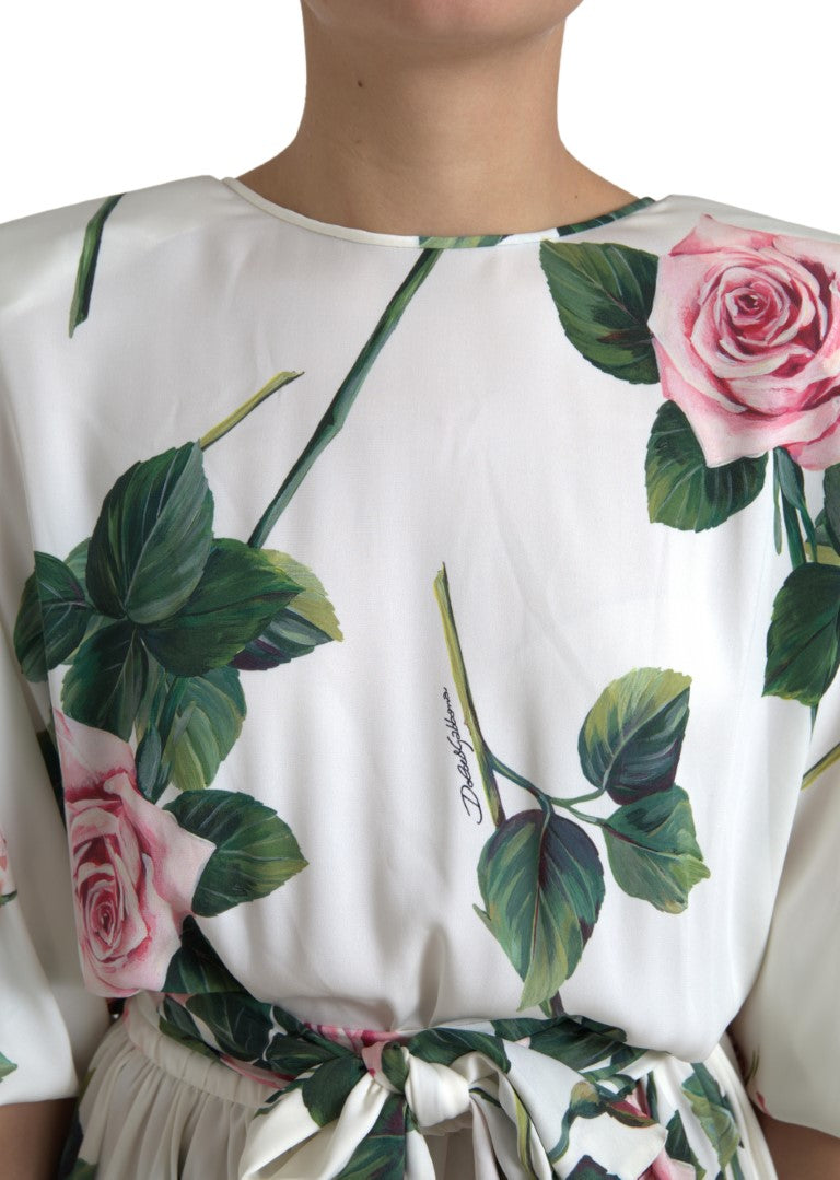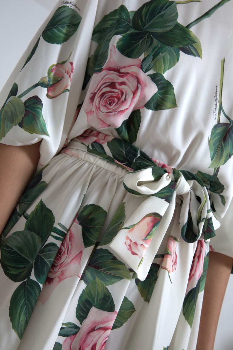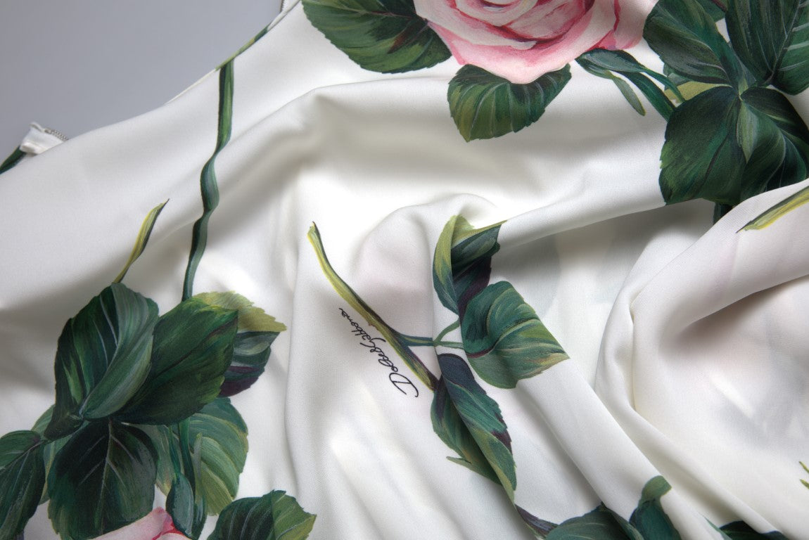 Indulge in the epitome of elegance with this exquisite knee-length A-line dress, featuring a stunning floral print that will turn heads at any occasion. Designed by the acclaimed fashion house Dolce & Gabbana, this dress exquisitely combines timeless style with luxurious comfort. Tailored to perfection with a flattering silhouette, it boasts a pristine white color that exudes pure sophistication. Crafted from a rich blend of 94% silk and 6% elastane, the dress ensures an impeccable drape and a touch of stretch for the perfect fit. Complete with a discreet zipper closure and the signature Dolce & Gabbana logo details, this piece is a testament to Italian craftsmanship. Wear it and feel the allure of high fashion with every step you take.