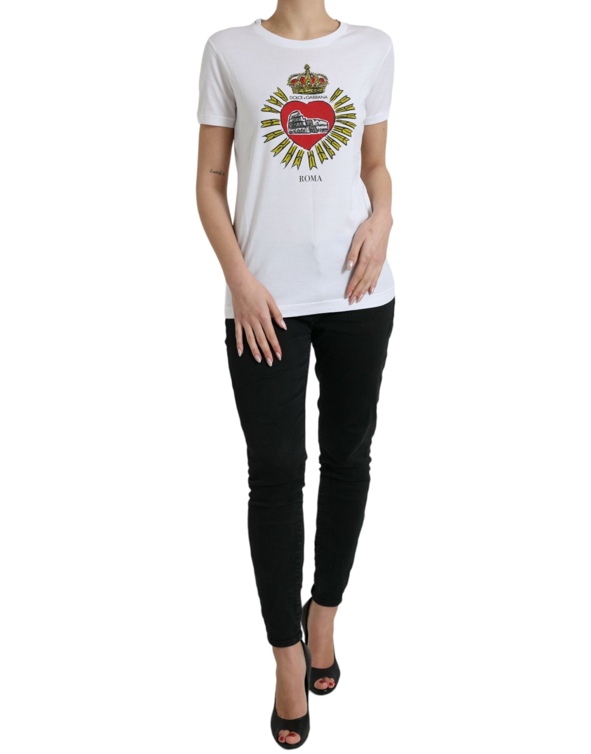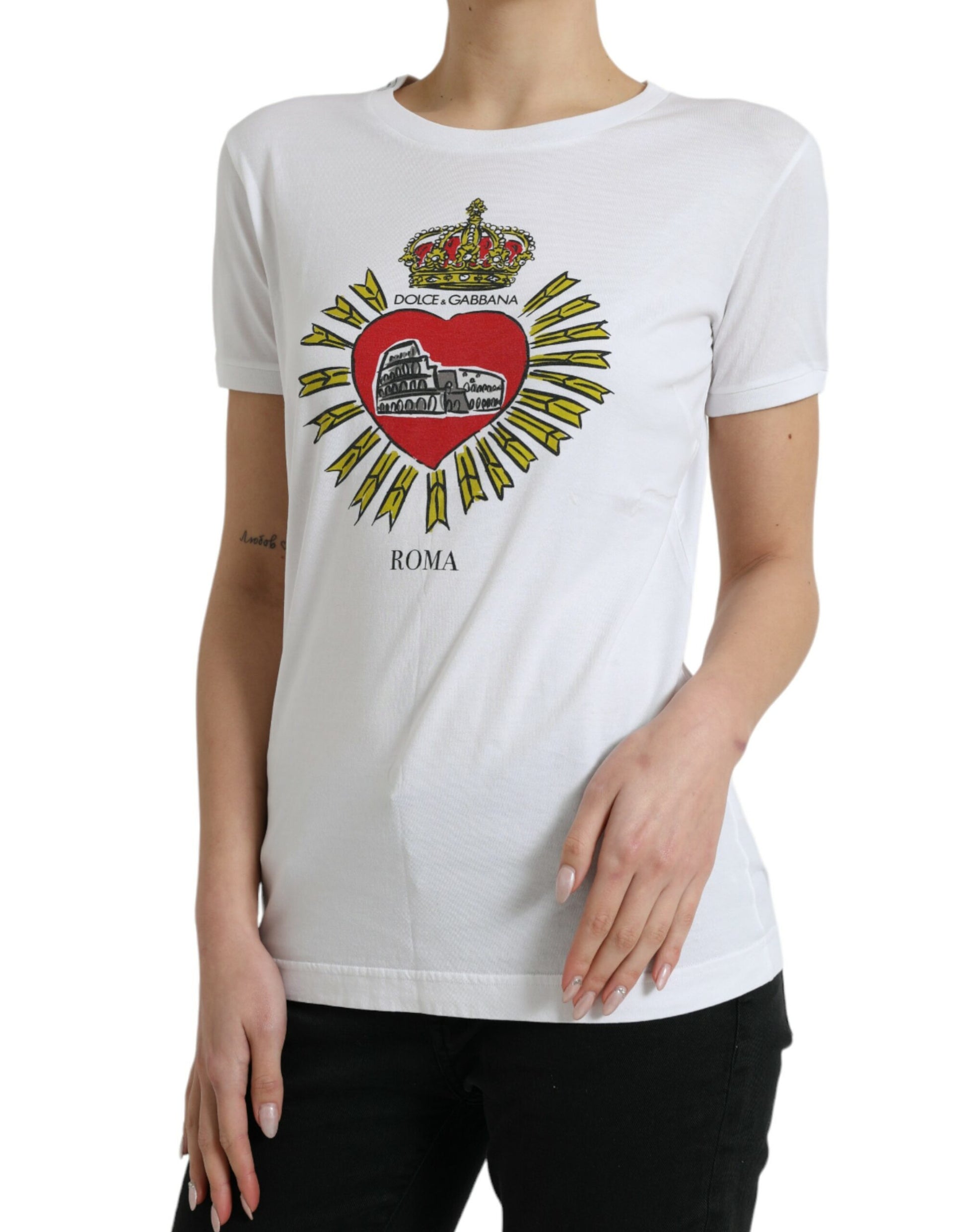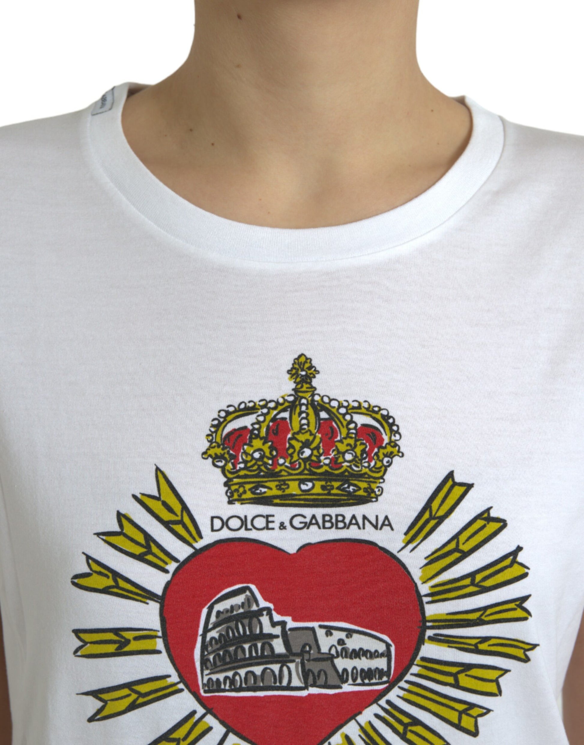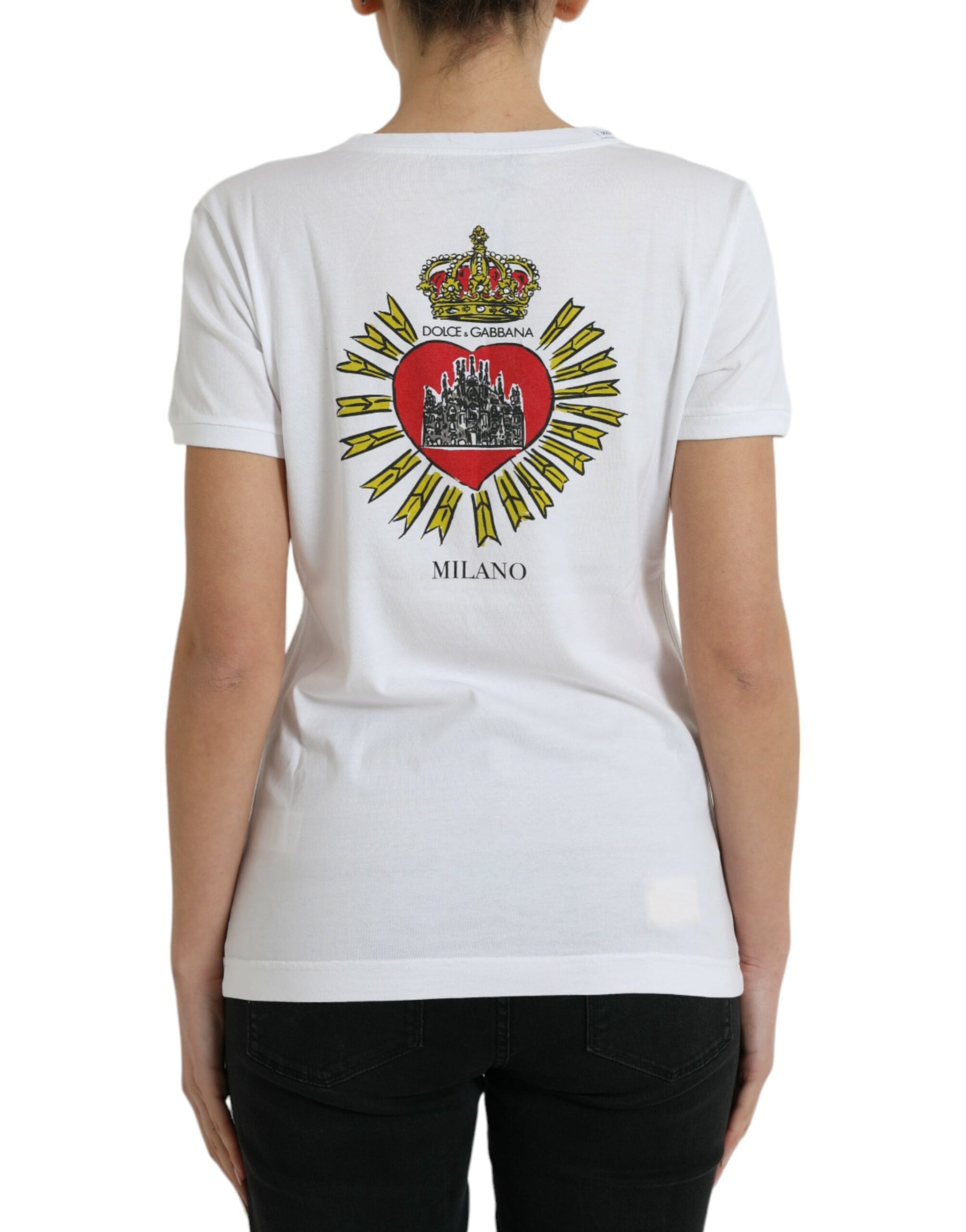 Indulge in the epitome of Italian luxury with this pristine Dolce & Gabbana cotton t-shirt. This stunning top features a sacred heart print that adds a touch of divine elegance to any outfit. The premium fabric ensures a comfortable, slightly loose fit that is perfect for tucking into your favorite jeans or a chic mini skirt. This t-shirt is not just a garment but a statement piece that exudes sophistication and style.
