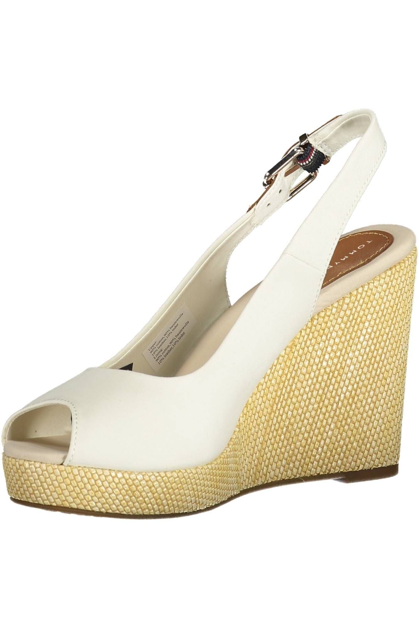 Elevate your summer look with these Tommy Hilfiger wedge sandals that blend comfort with bold style. Exuding confidence with every step, the striking 11 cm heel is perfectly balanced with a secure buckle fastening. The contrasting details and the iconic logo embroidery add a dash of sophistication, making these the go-to choice for fashion-forward individuals. Crafted with a blend of cotton, polyester, and polyethylene, they are as durable as they are chic. Discover the charm of these white wonders, ideal for sunny escapades or breezy evenings.