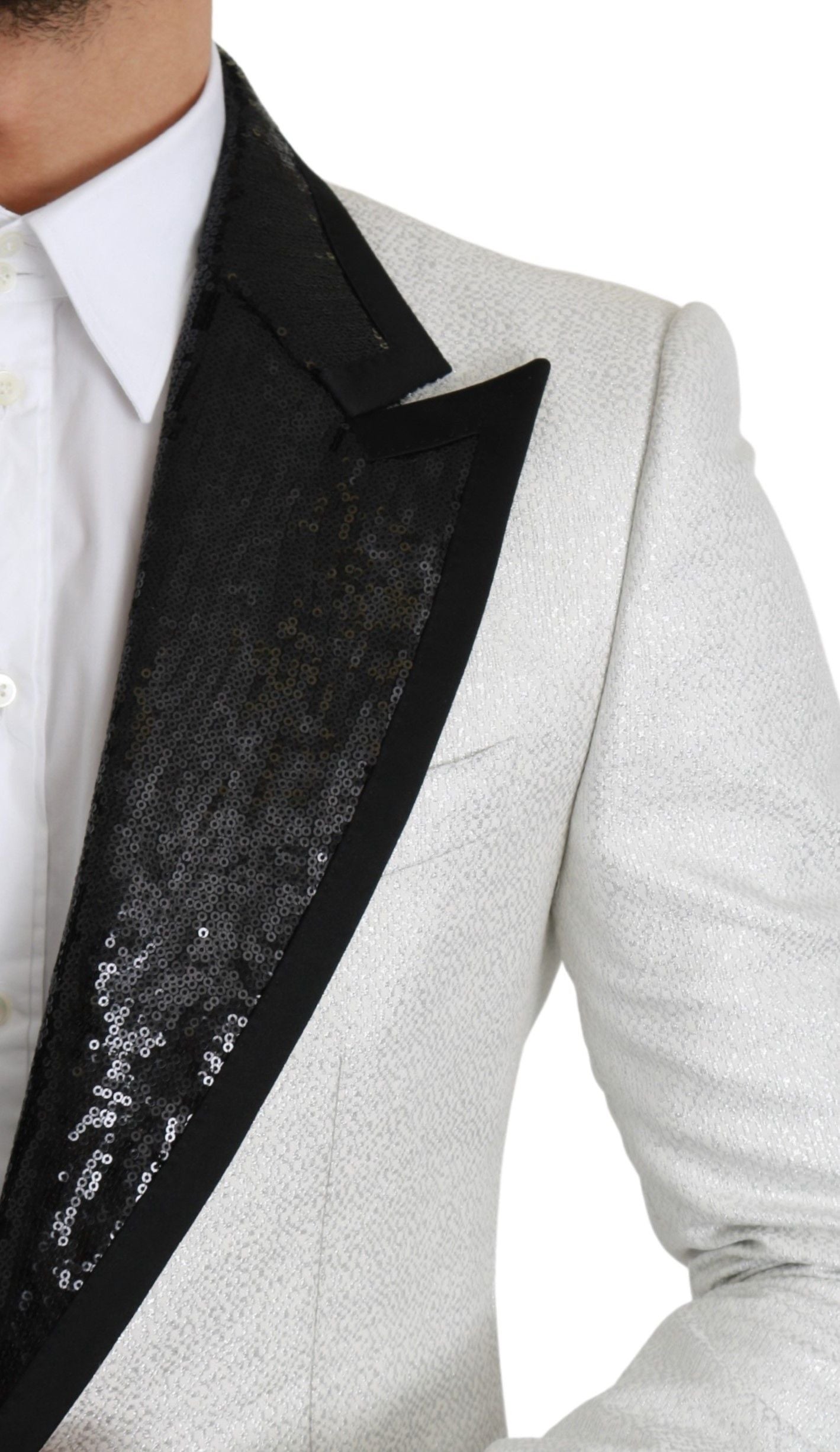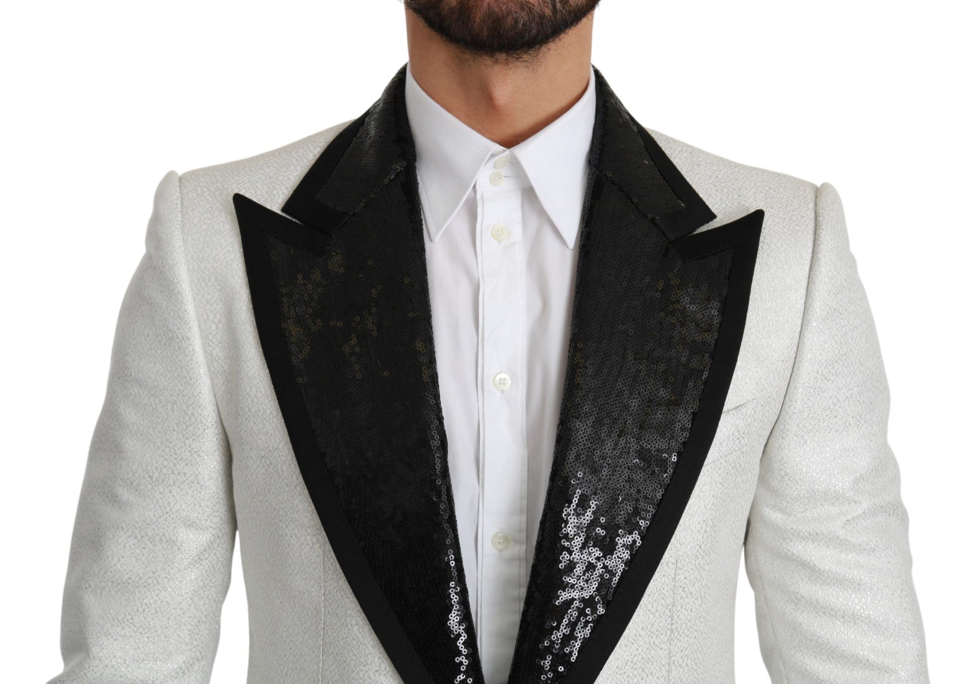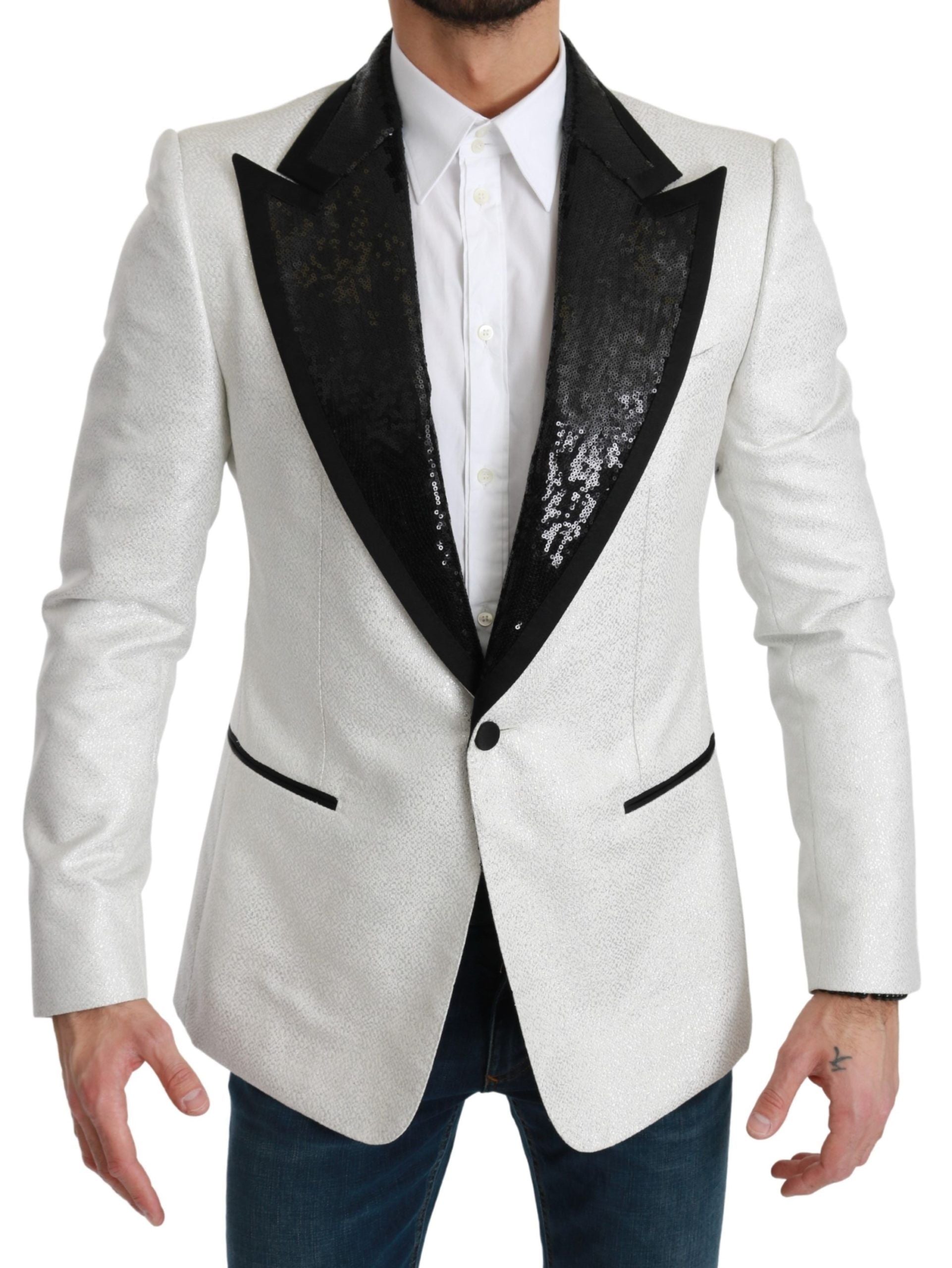 Step out in sophisticated style with this stunning Dolce & Gabbana blazer. Crafted from a luxurious blend of polyester, wool, nylon, and silk, this slim-fit jacket offers a sharp silhouette for any discerning gentleman. A striking monochrome palette is elevated by black sequin detailing on the lapel, ensuring you capture attention at any upscale event. Tailored for elegance with a single button closure and multiple pockets, this blazer is a testament to Italian craftsmanship and an impeccable addition to your wardrobe.