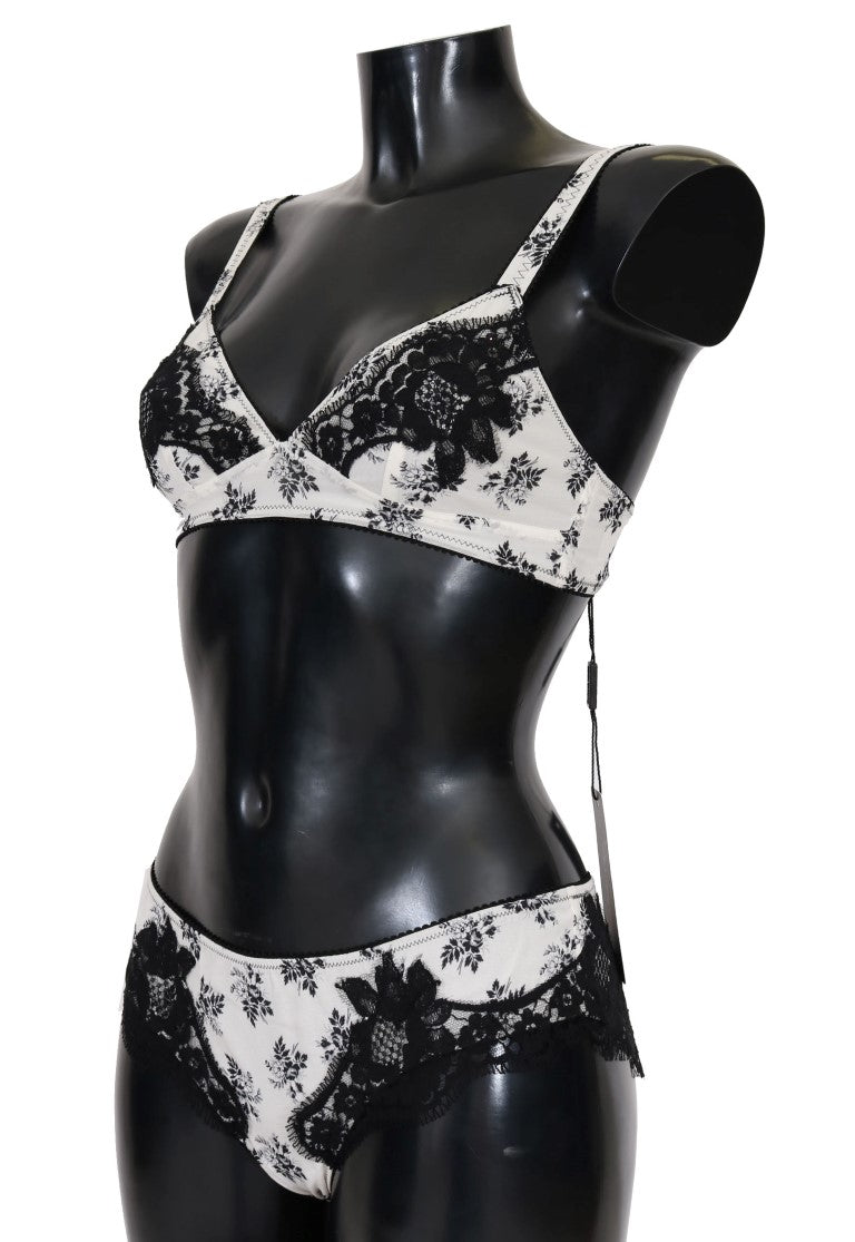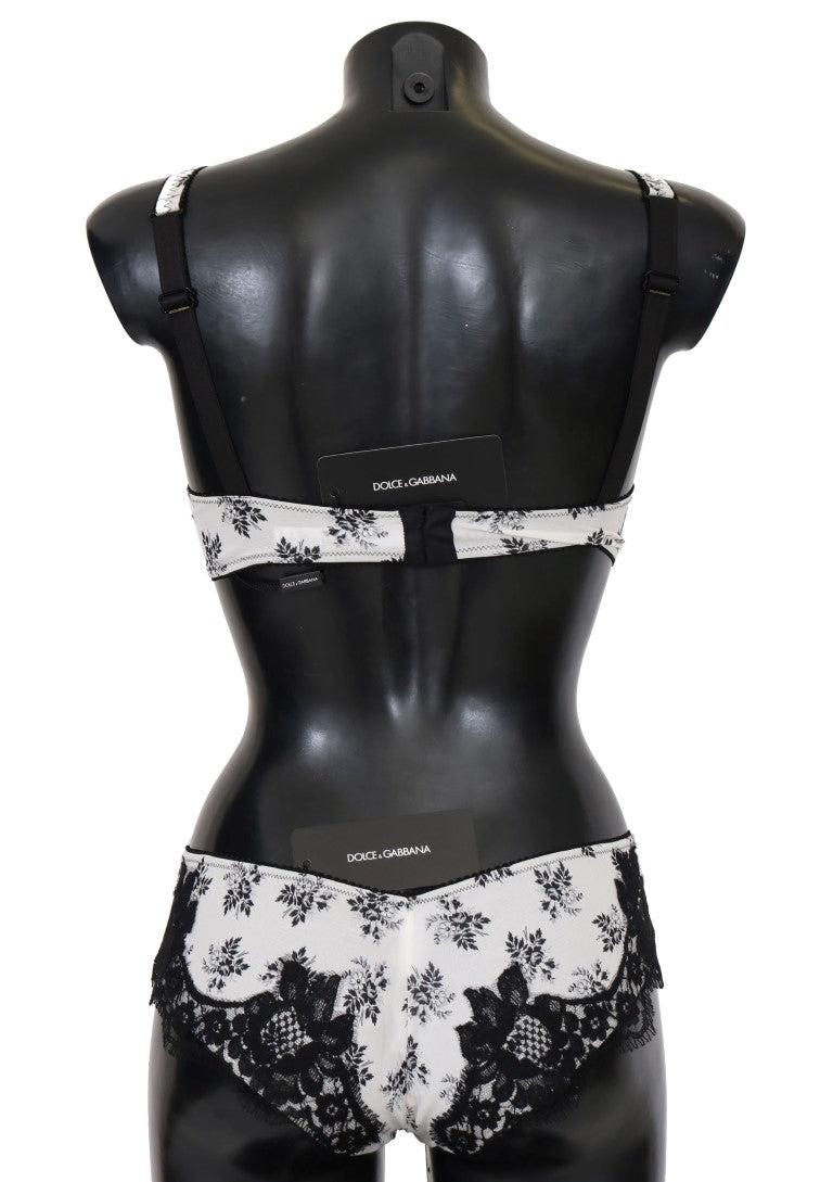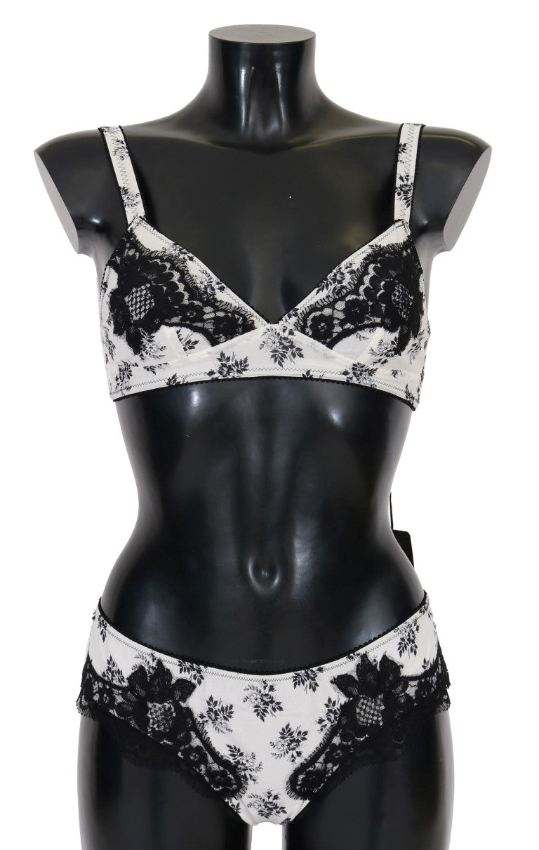 Indulge in the epitome of luxury with this exquisite Dolce & Gabbana lingerie set. Crafted from a sumptuous silk blend, adorned with an elegant black and white floral lace design, this bra and bottom duo promises to add an alluring touch to your intimates collection. Infused with Italian sophistication, each piece showcases the iconic logo, serving not just comfort but also timeless style.