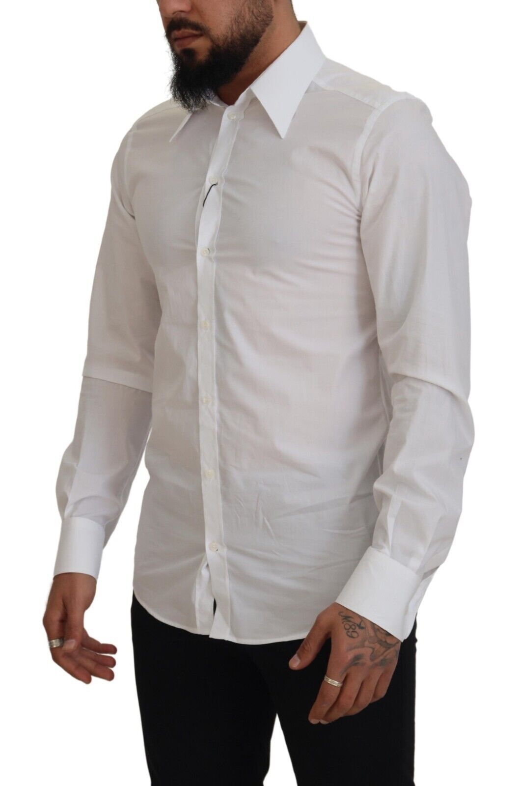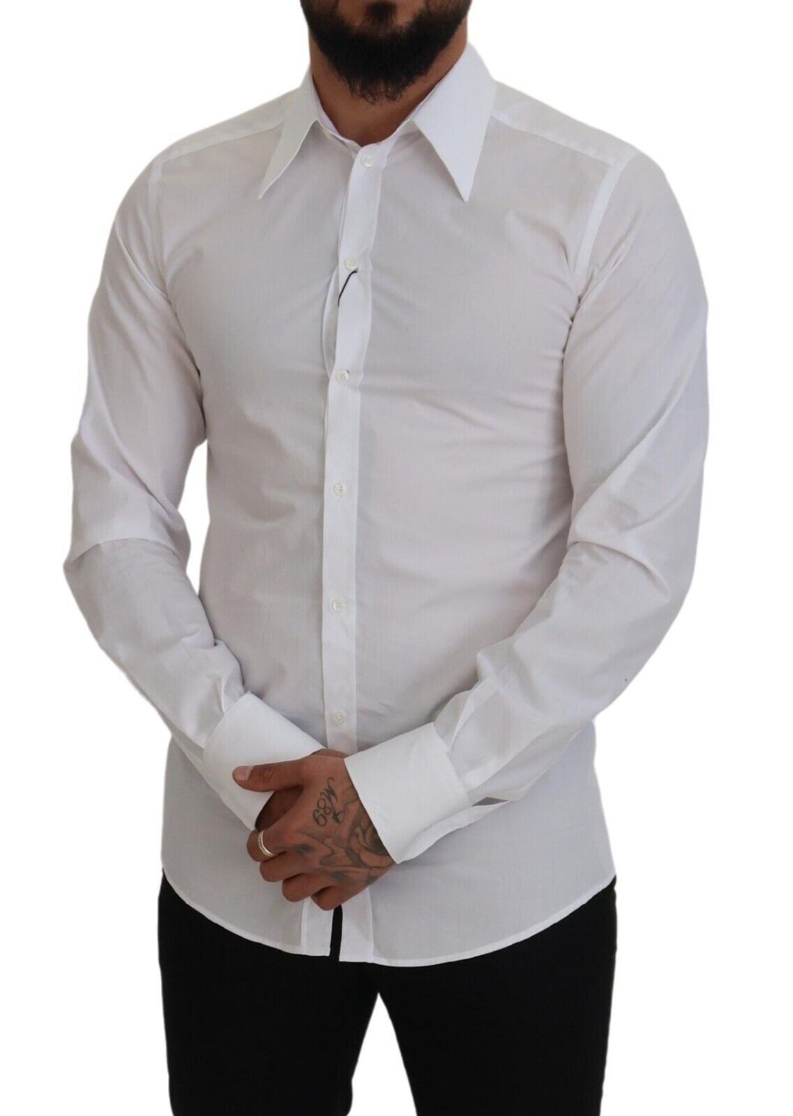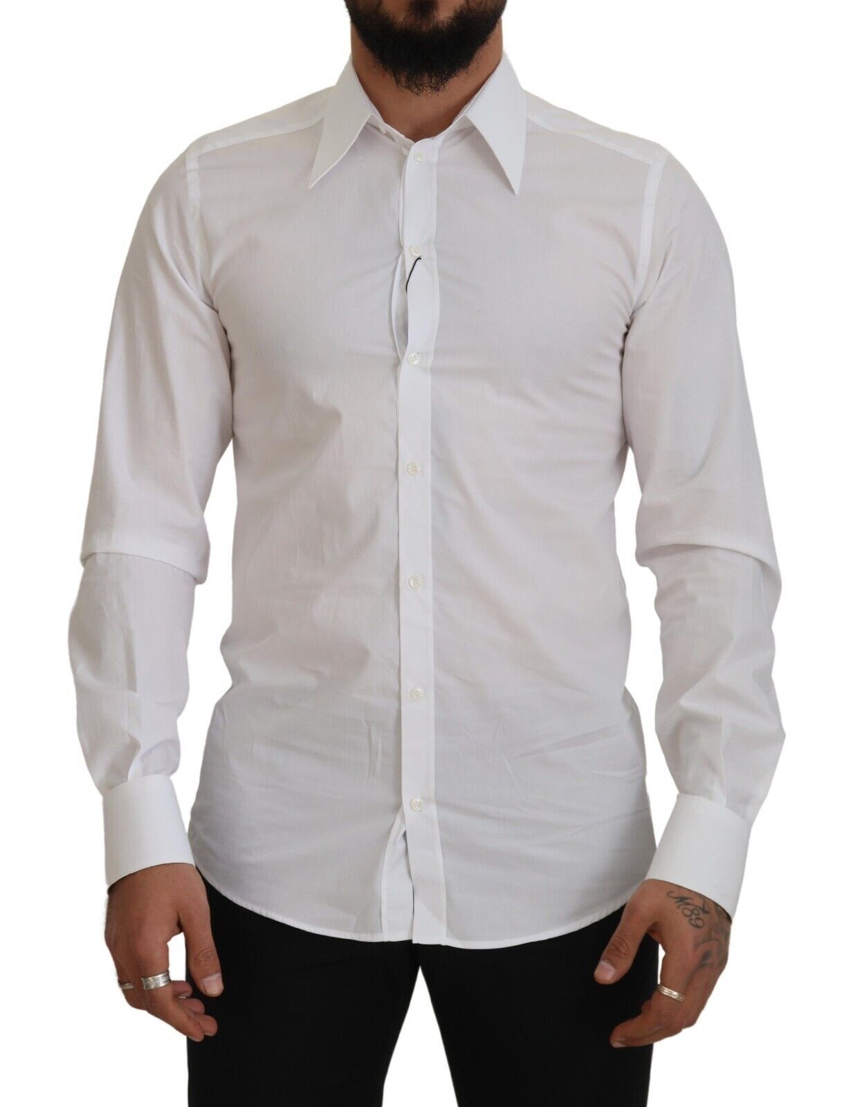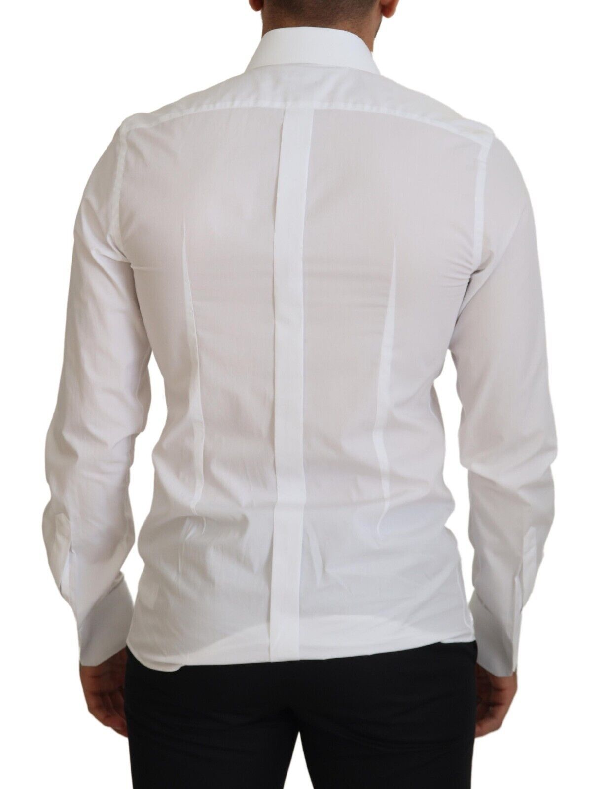 Step out in style with this immaculate white dress shirt from the iconic Dolce & Gabbana collection. Tailored to perfection with a slim fit cut, it’s the quintessential piece for a polished look. Crafted from the finest 100% cotton, its comfortable feel does not compromise on luxury. Ideal for formal occasions or adding a touch of class to your everyday wardrobe, this shirt comes complete with distinguished logo details and a sleek front button closure, all made in Italy.