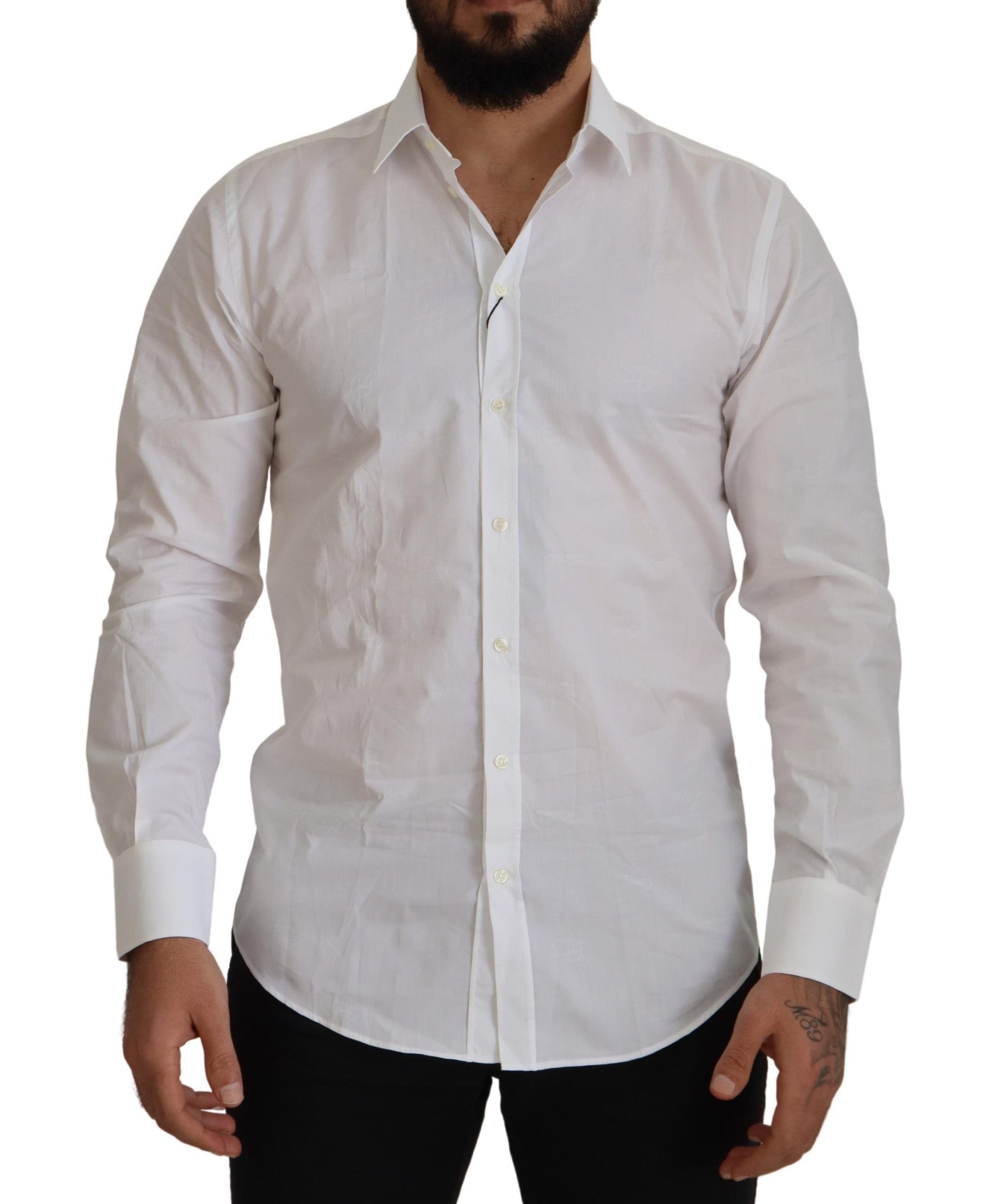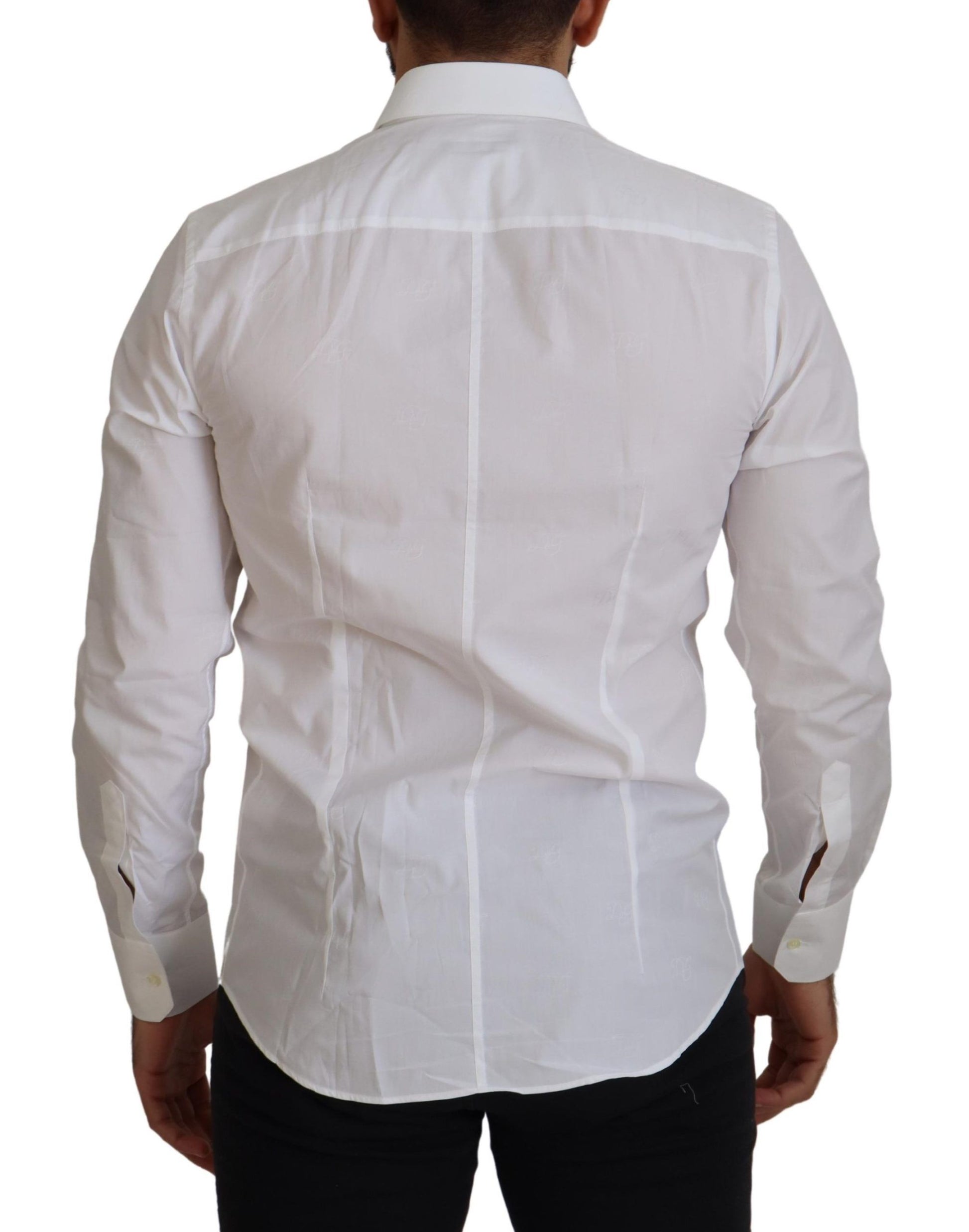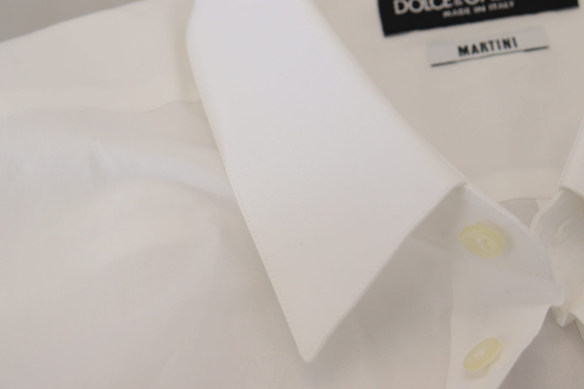 Exude elegance with this pristine, 100% authentic Dolce & Gabbana Martini cotton shirt. Crafted for those who appreciate the finer things, this slim-fit piece is more than just a shirt—it’s a statement of style and sophistication. With a classic neck and long sleeves, topped with a sleek button-down closure, it’s the perfect addition to your refined wardrobe.