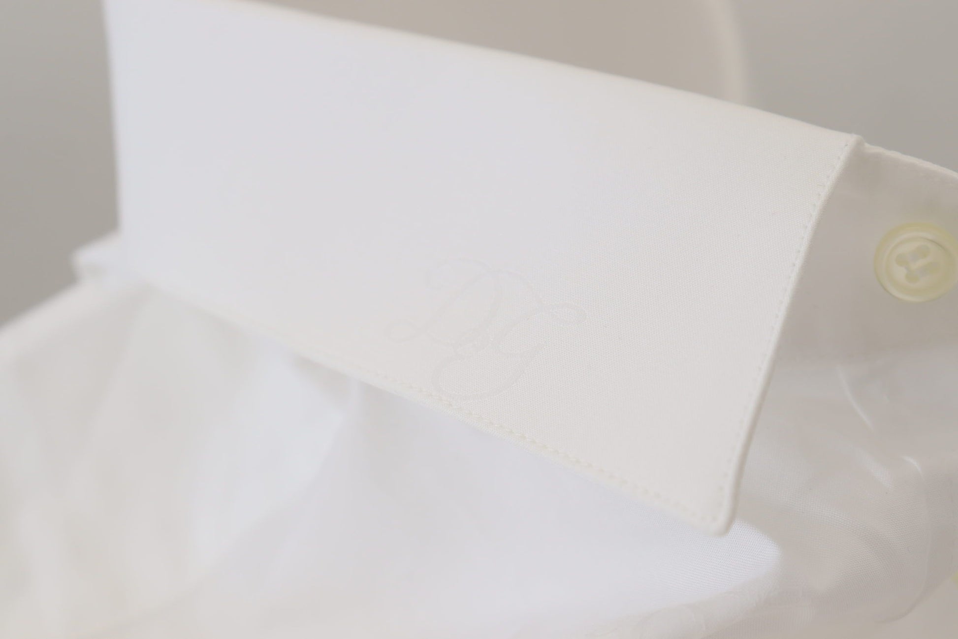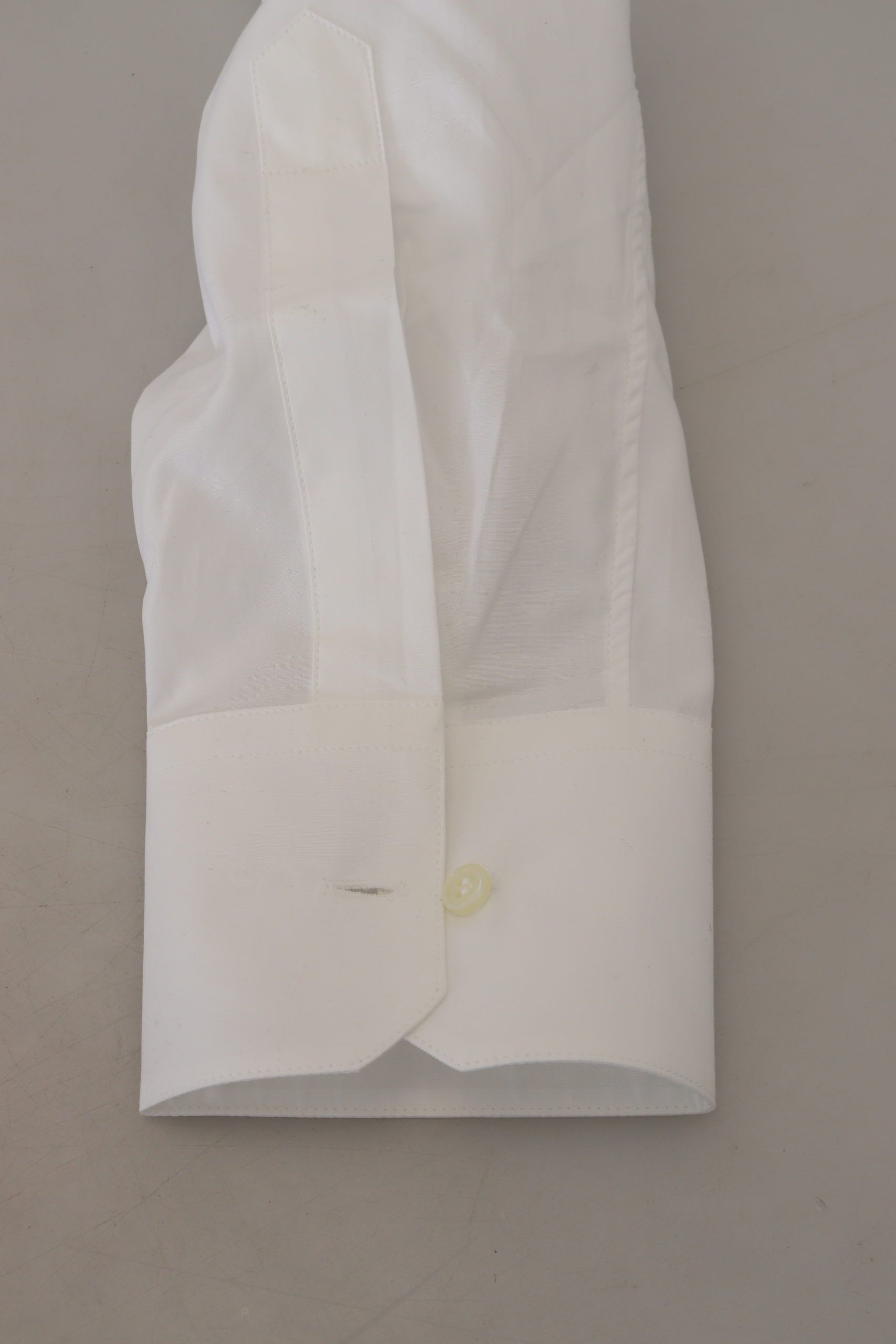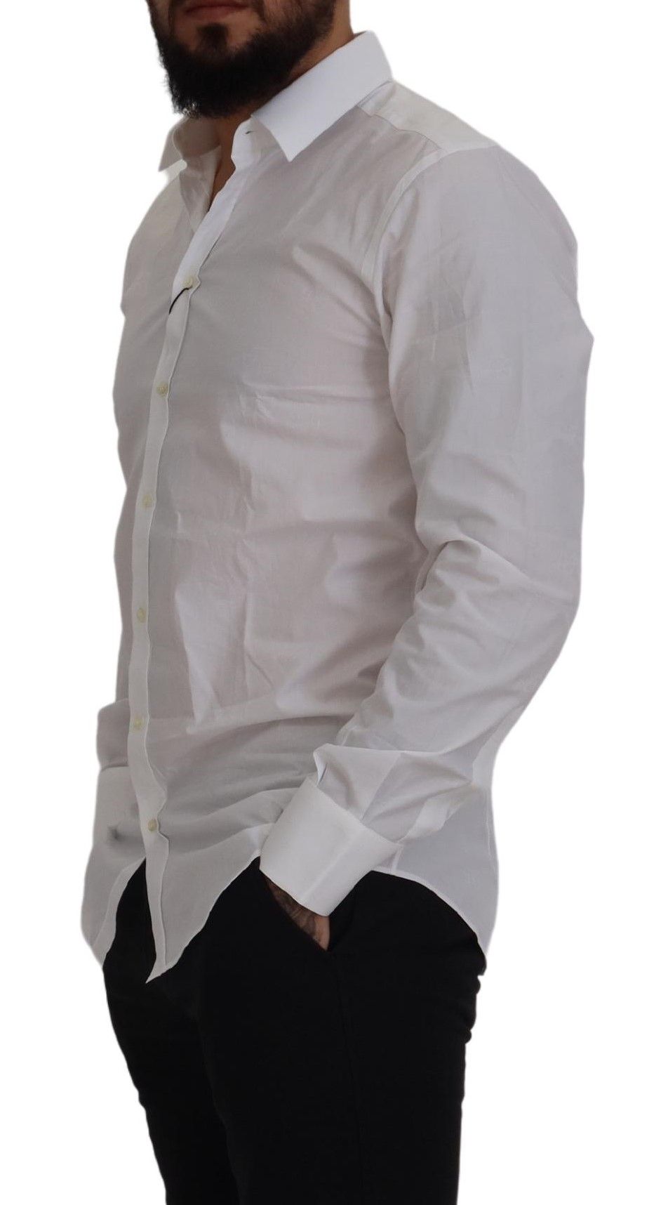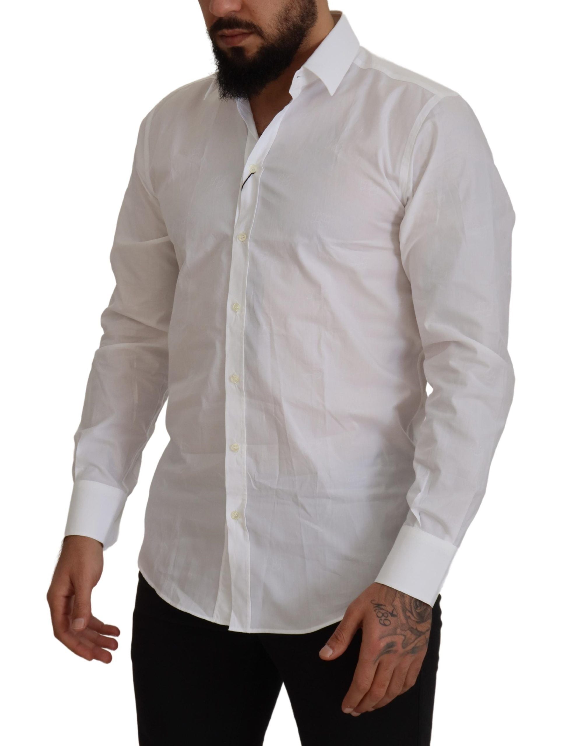 Exude elegance with this pristine, 100% authentic Dolce & Gabbana Martini cotton shirt. Crafted for those who appreciate the finer things, this slim-fit piece is more than just a shirt—it’s a statement of style and sophistication. With a classic neck and long sleeves, topped with a sleek button-down closure, it’s the perfect addition to your refined wardrobe.