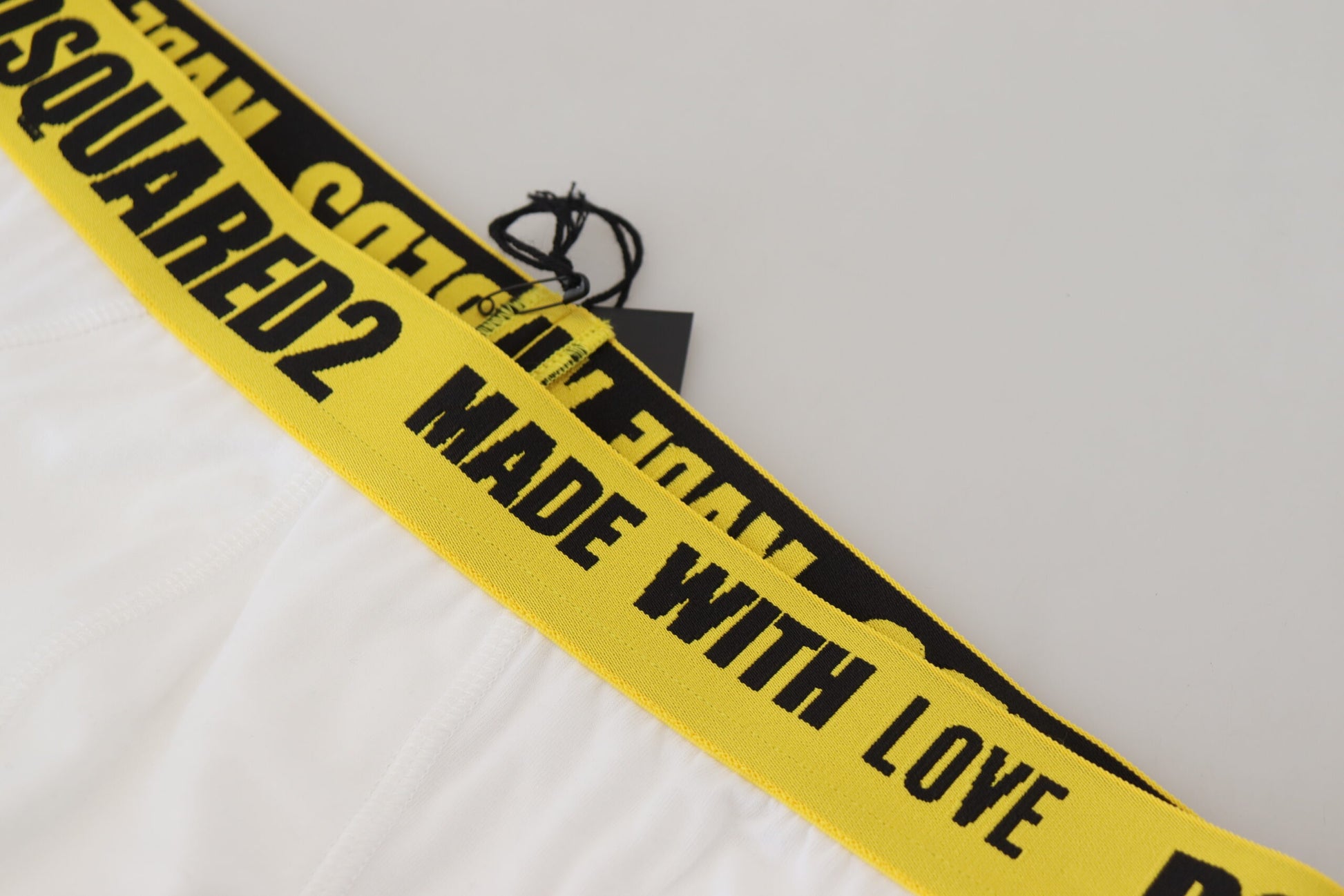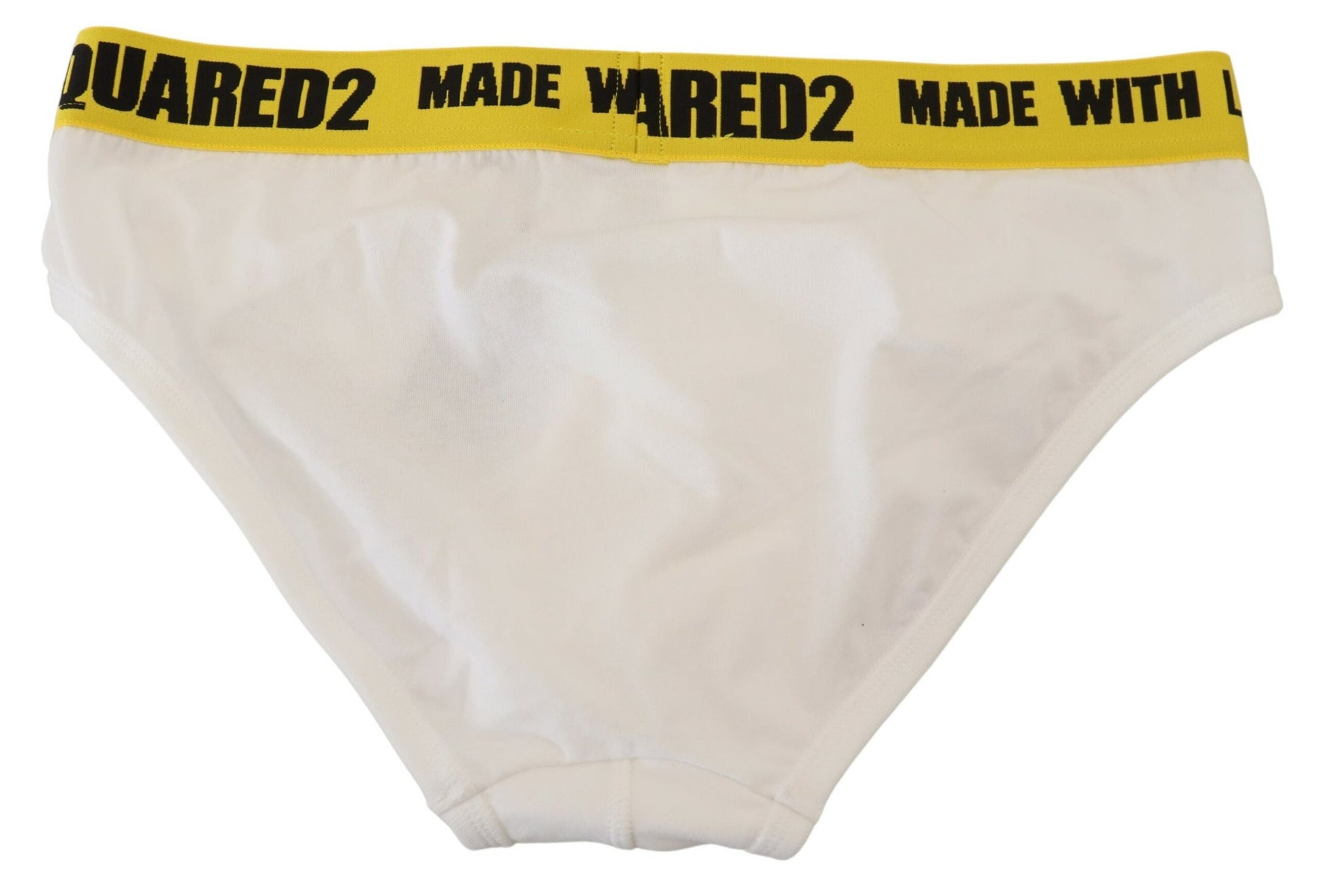 Indulge in the comfort and style of these absolutely stunning, 100% Authentic briefs from Dsquared². Designed with an elastic waistband for a snug fit, these briefs are crafted from a high-quality cotton stretch fabric that ensures great fit and comfort. Perfect for adding a touch of luxury to your underwear collection, they exude a sleek sophistication in a classic white color.