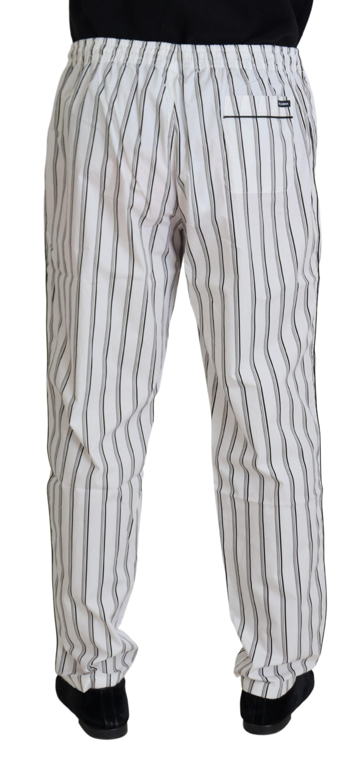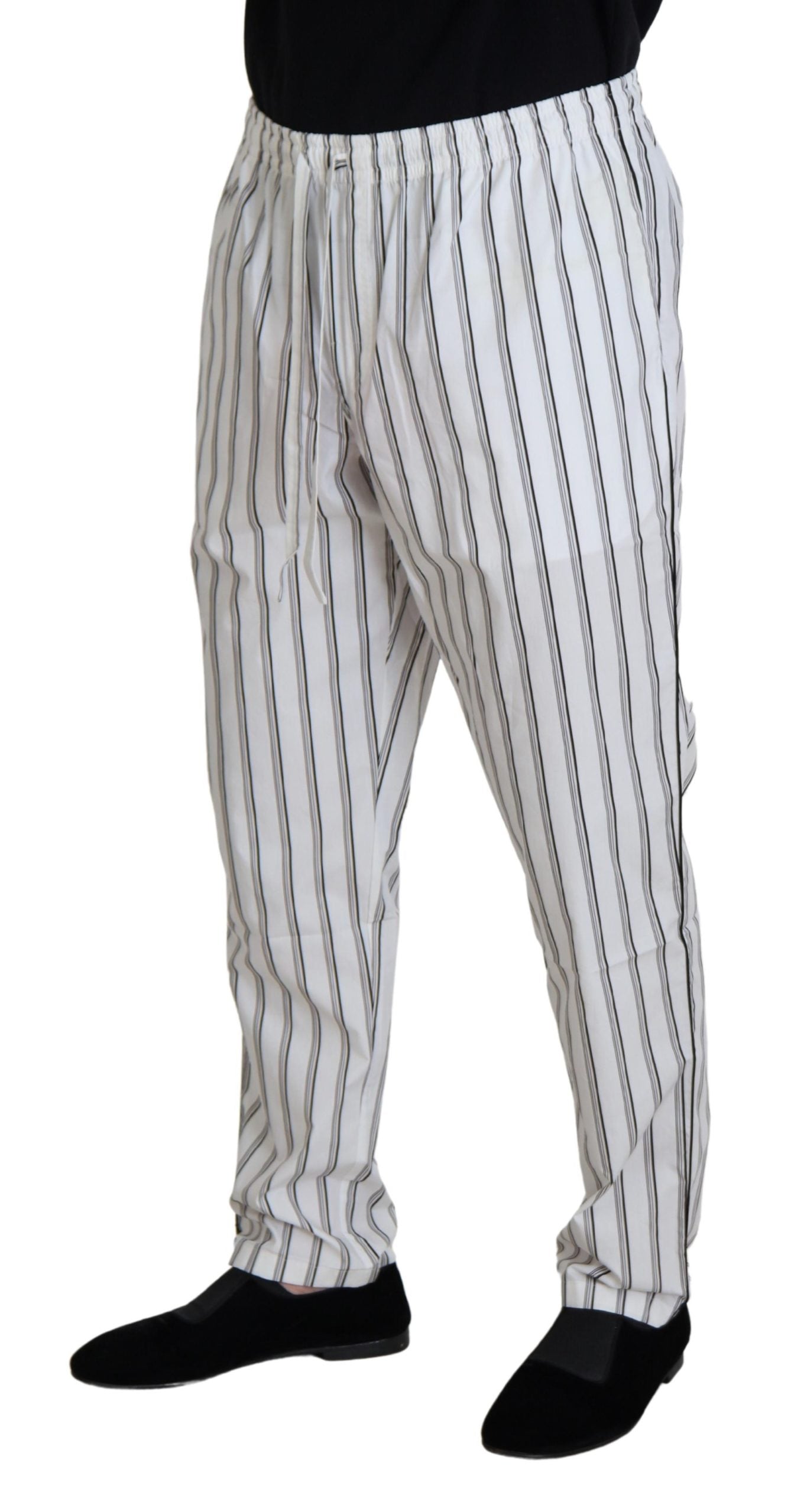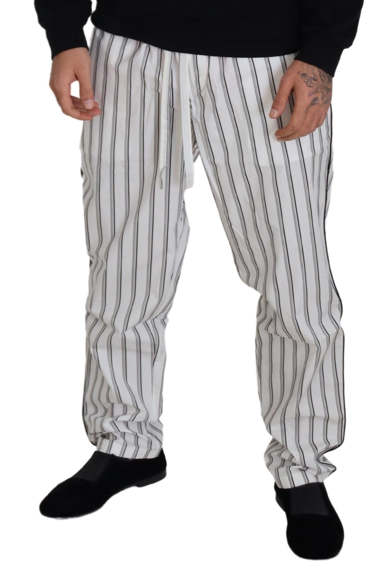 Experience luxury comfort with these elegant pajama pants from the exclusive MainLine collection by Dolce & Gabbana . Crafted from premium 100% cotton, these pants feature a classic white striped design, ensuring both style and ease for your lounging moments. Boasting logo details and Italian craftsmanship, add a touch of luxury to your nighttime routine with these exquisite pajama pants.