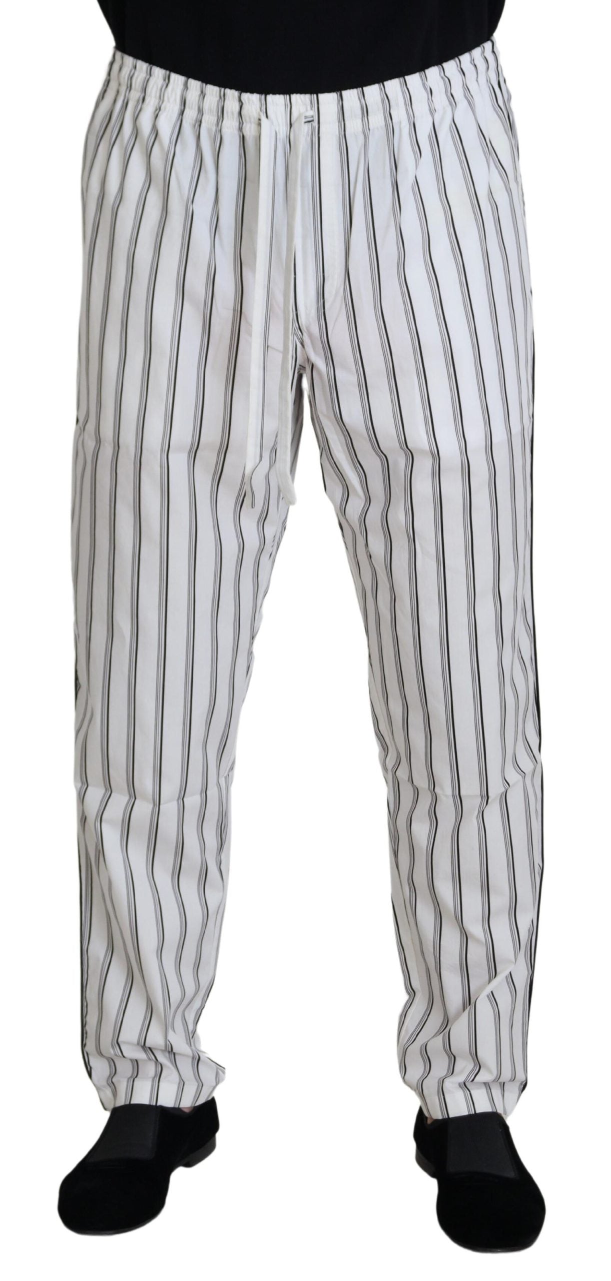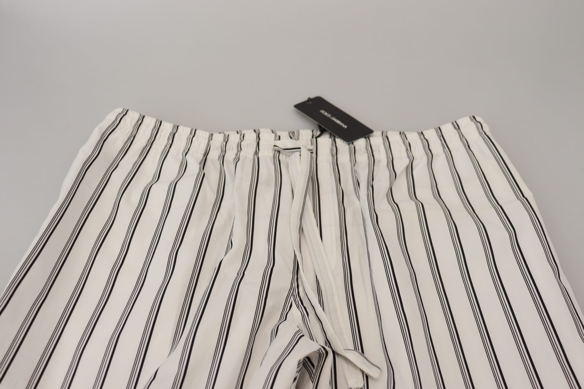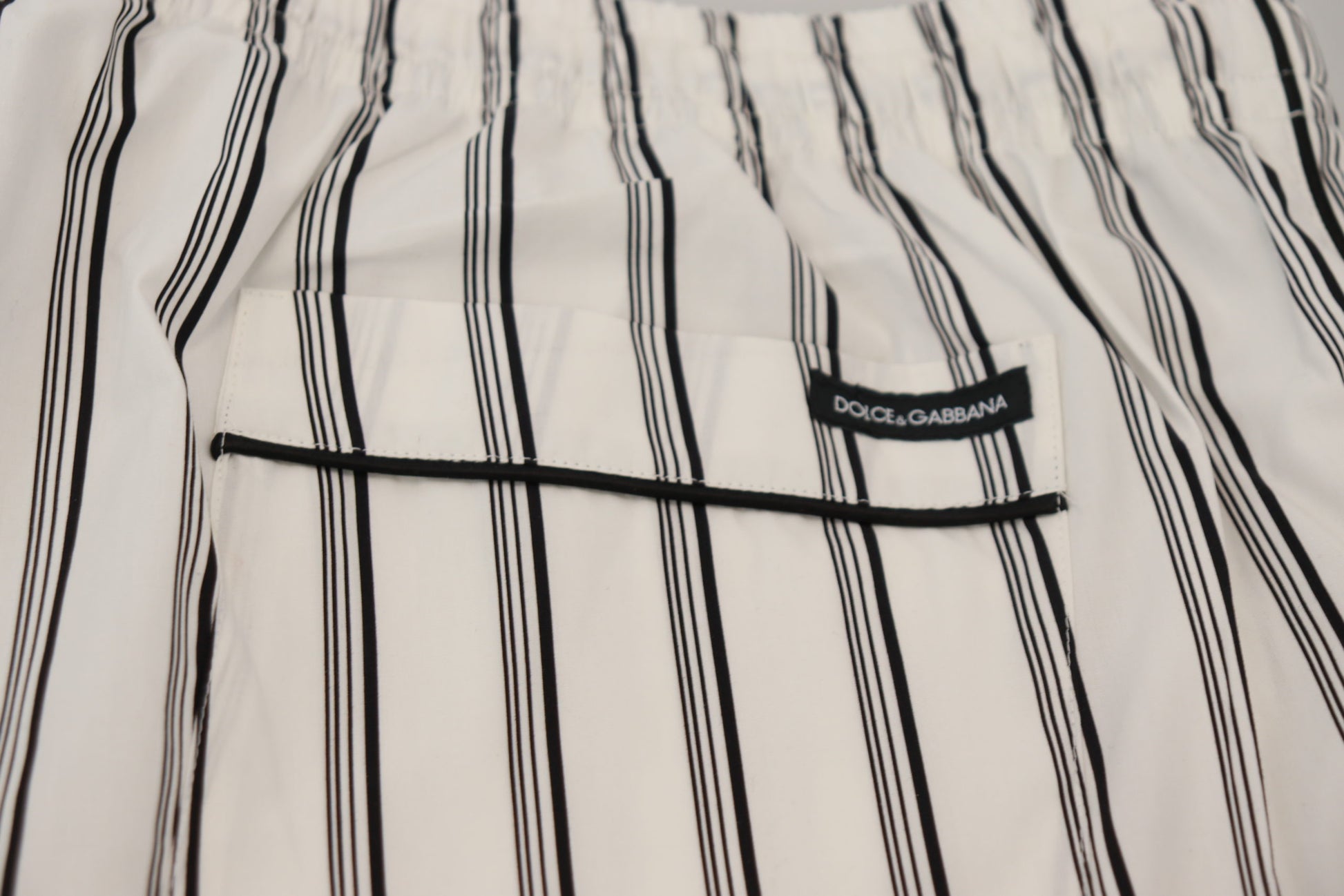 Experience luxury comfort with these elegant pajama pants from the exclusive MainLine collection by Dolce & Gabbana . Crafted from premium 100% cotton, these pants feature a classic white striped design, ensuring both style and ease for your lounging moments. Boasting logo details and Italian craftsmanship, add a touch of luxury to your nighttime routine with these exquisite pajama pants.
