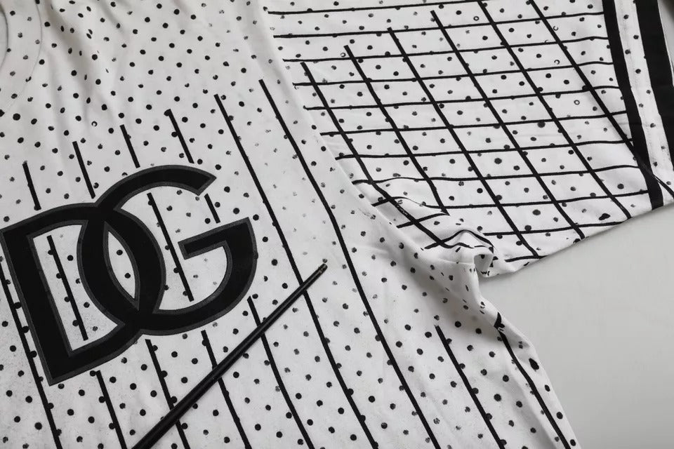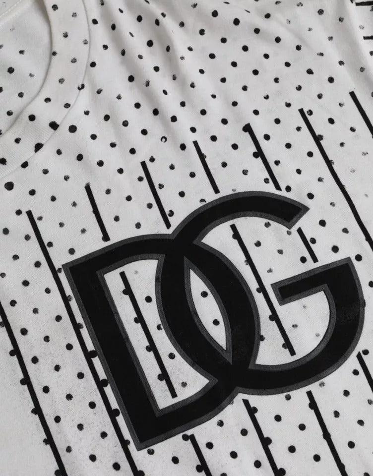White Stripes Polka Dot Cotton Crew Neck T-shirt