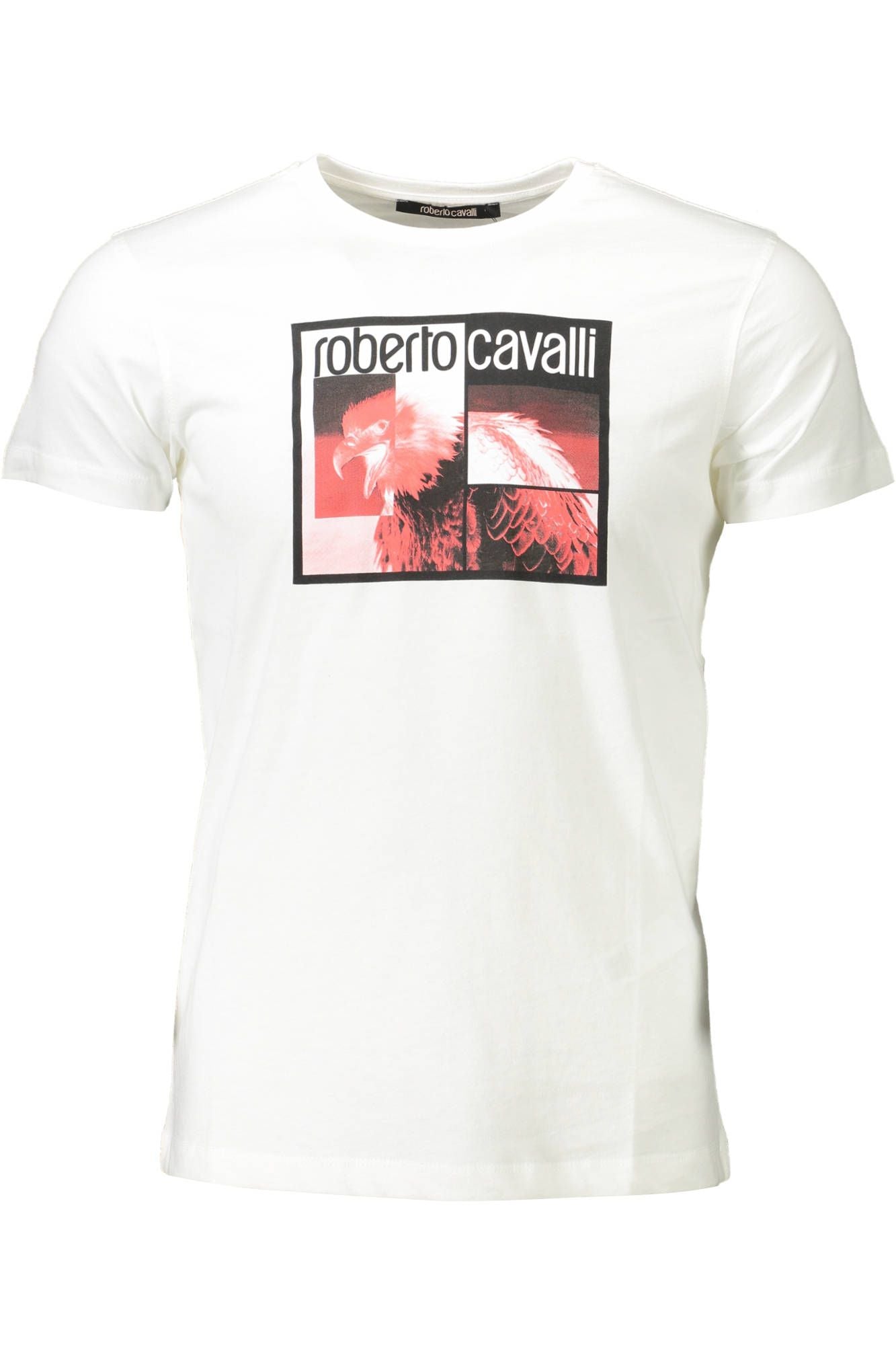 Elevate your casual wardrobe with the unmistakable edge of Roberto Cavalli. This short sleeve T-shirt, with its crisp white hue, is seamlessly taken from simple to standout with a bold print and the iconic logo emblazoned on the front. Crafted from the finest cotton, it’s as comfortable as it is stylish, made to reflect your exceptional taste. Perfect for infusing a touch of luxe into your everyday ensembles.