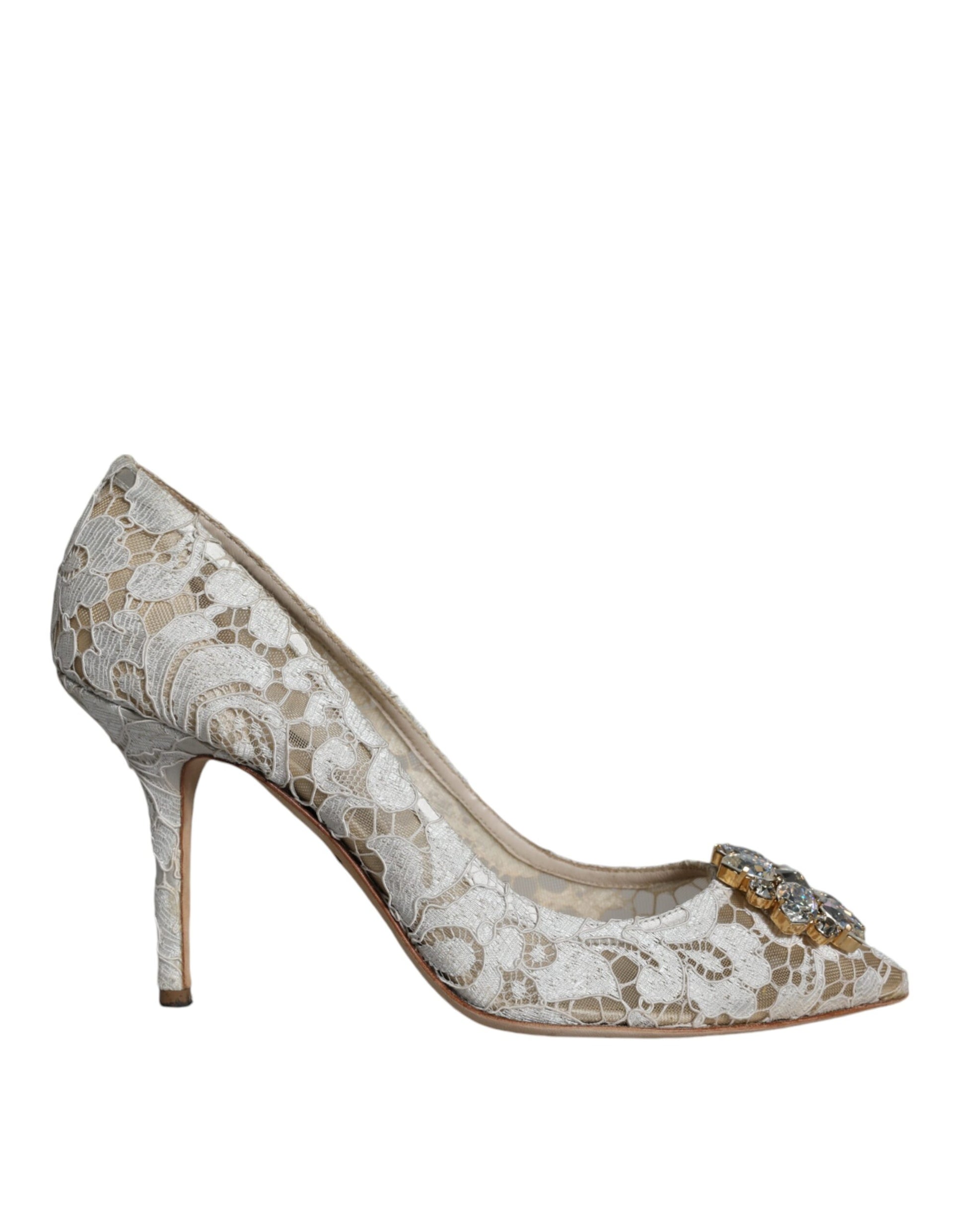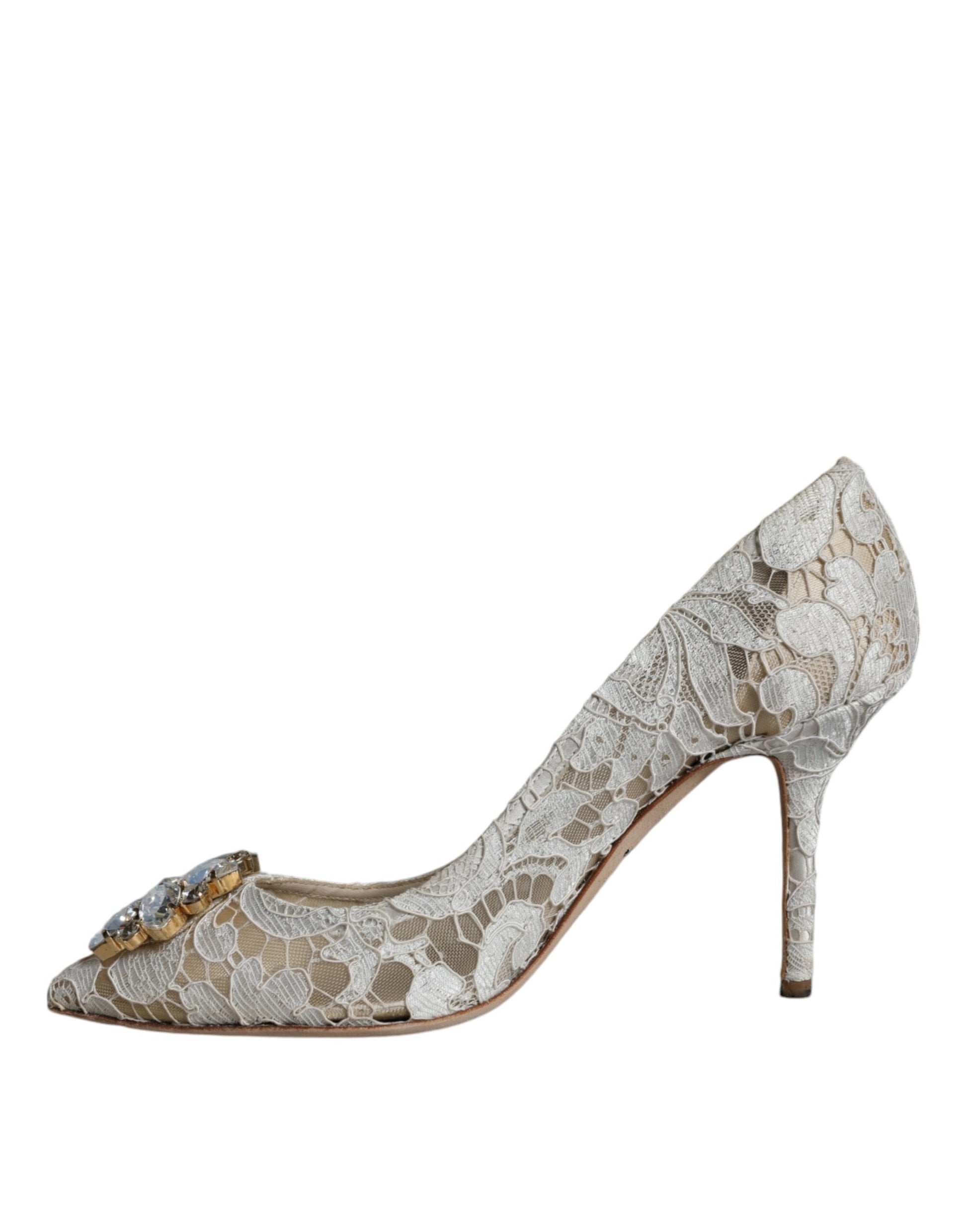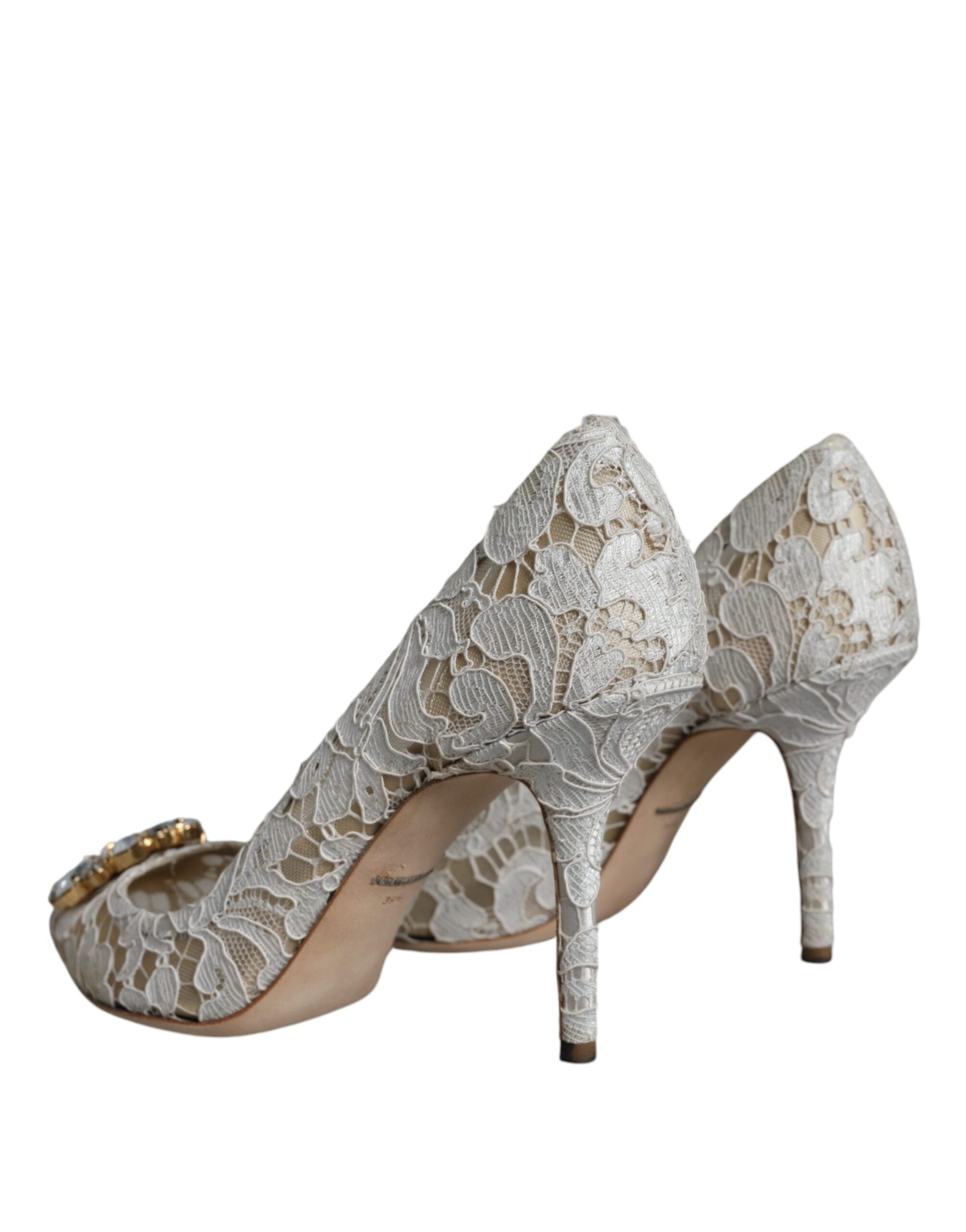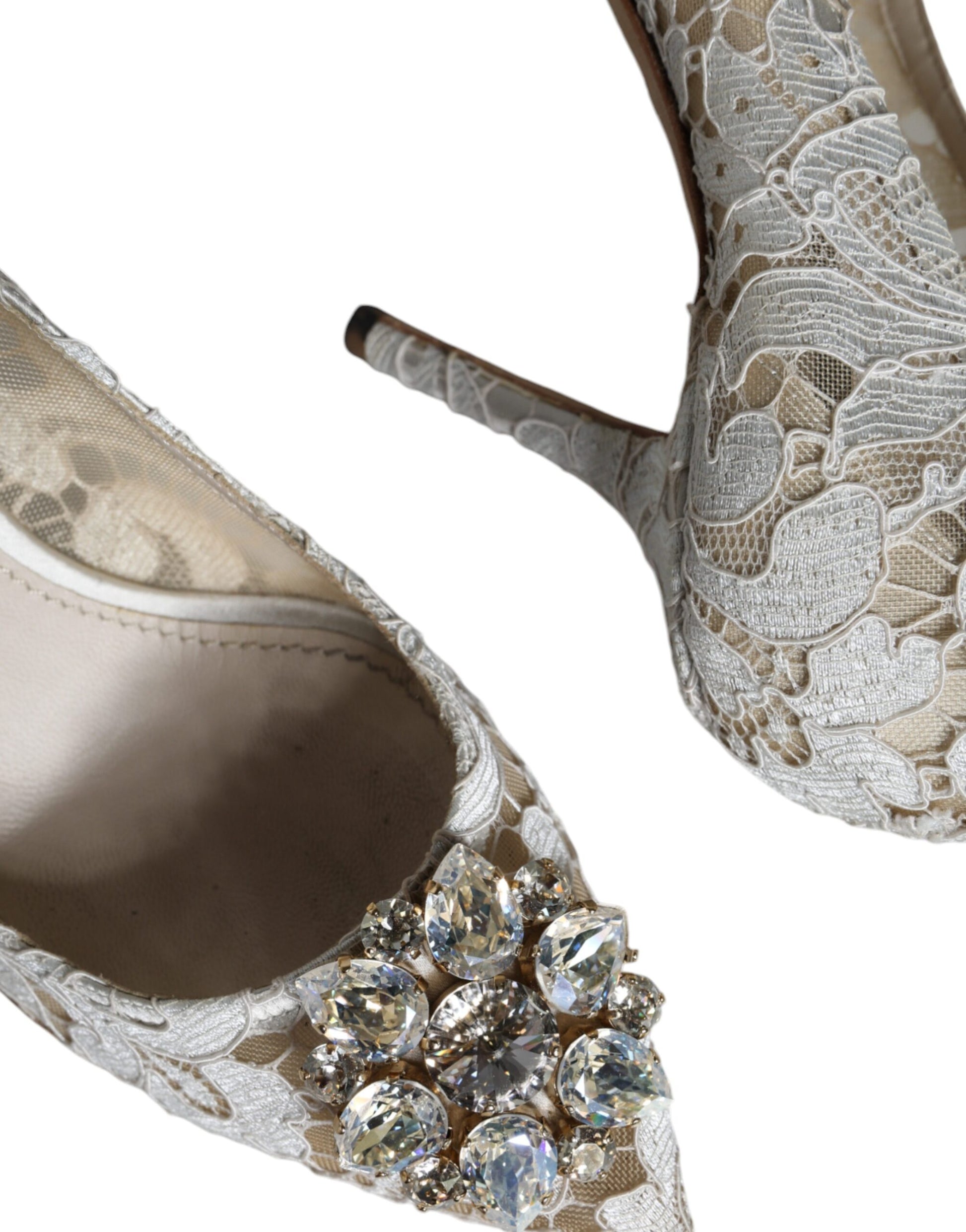 Gorgeous preowned with tags, 100% Authentic Dolce & Gabbana taormina lace heels pumps with crystals embellishment.