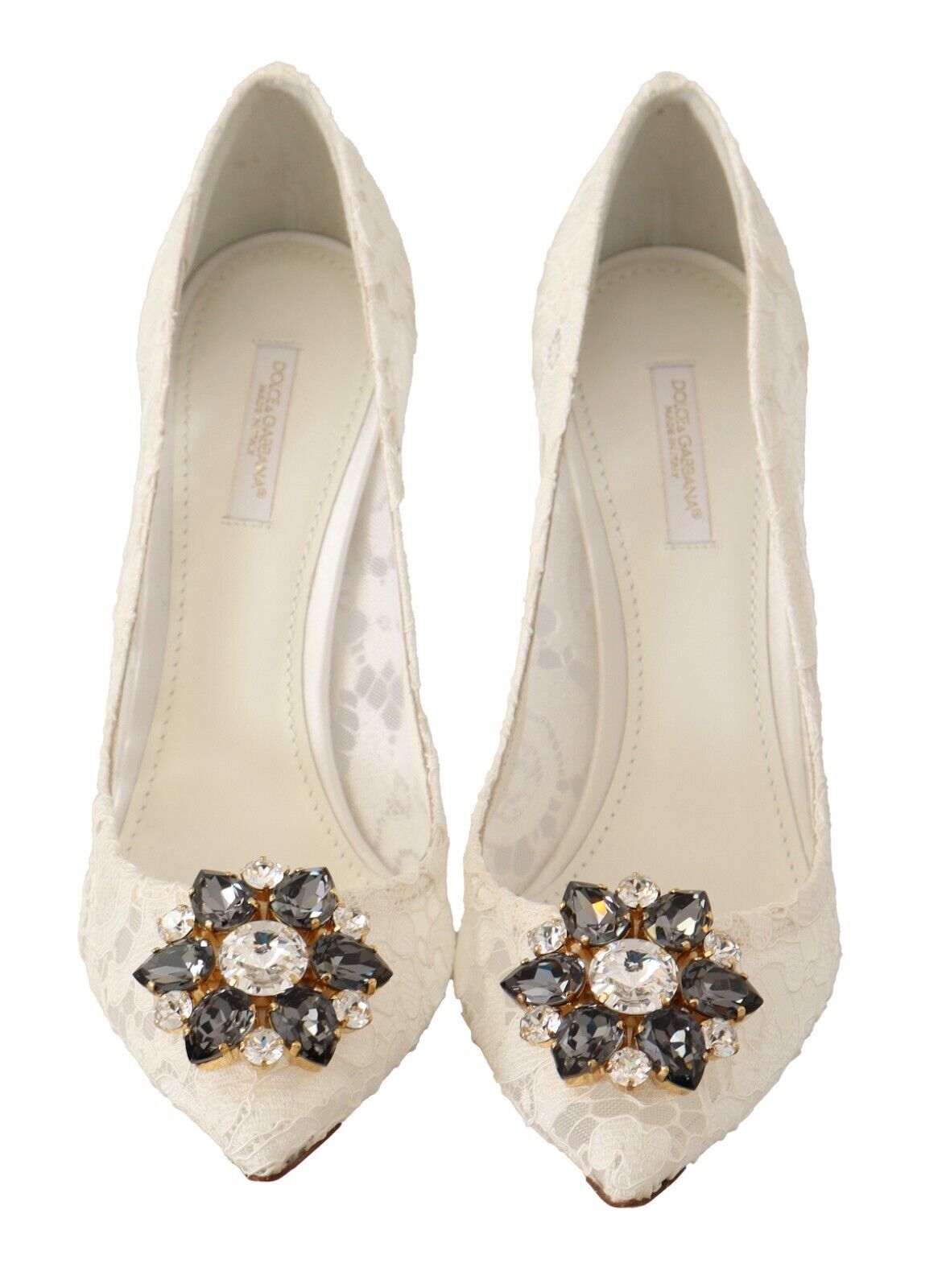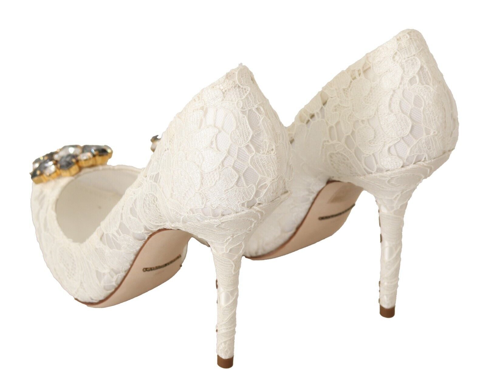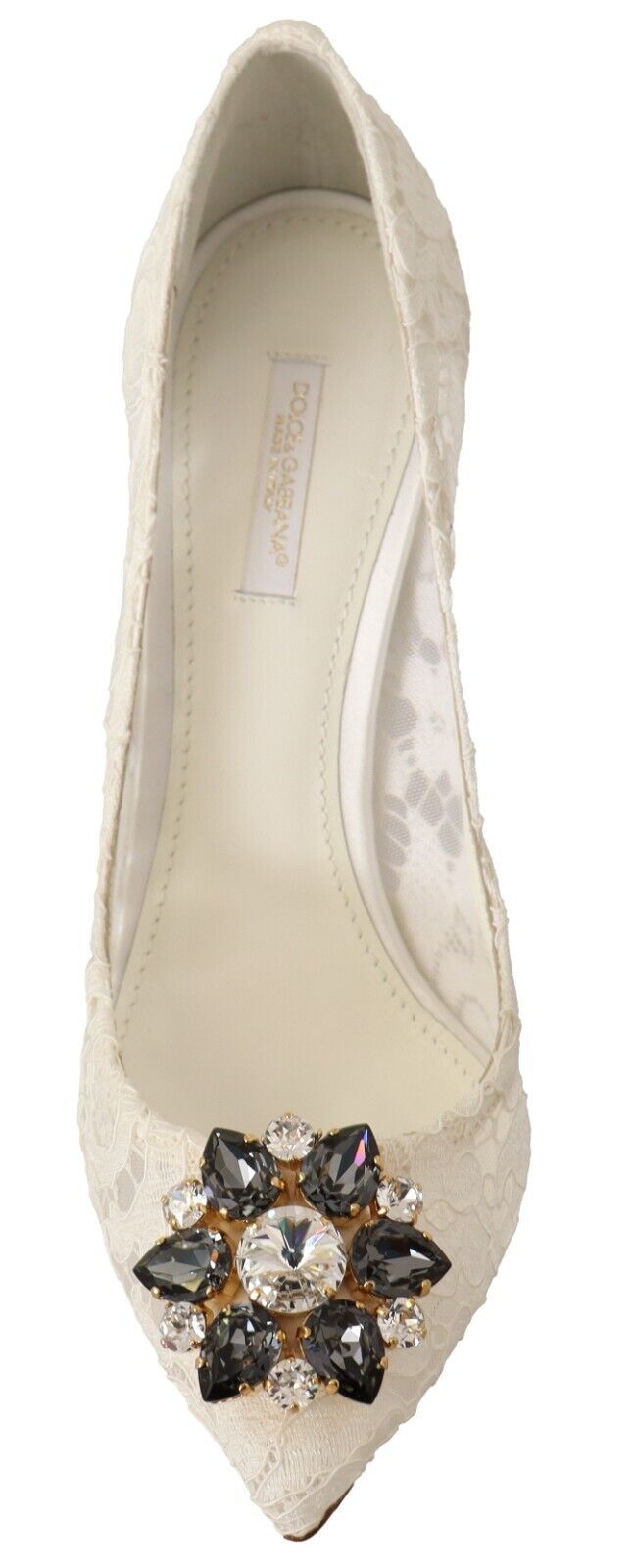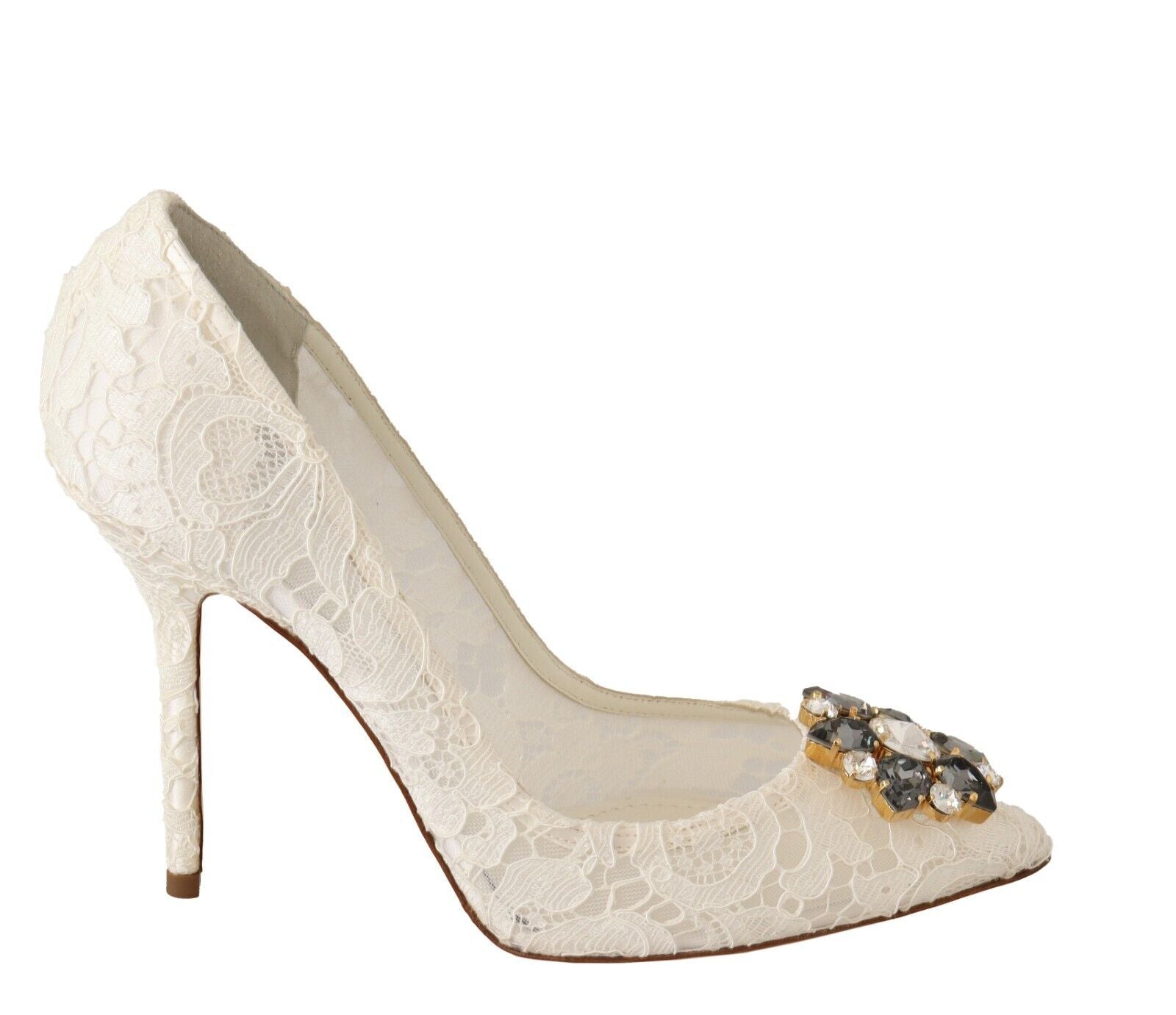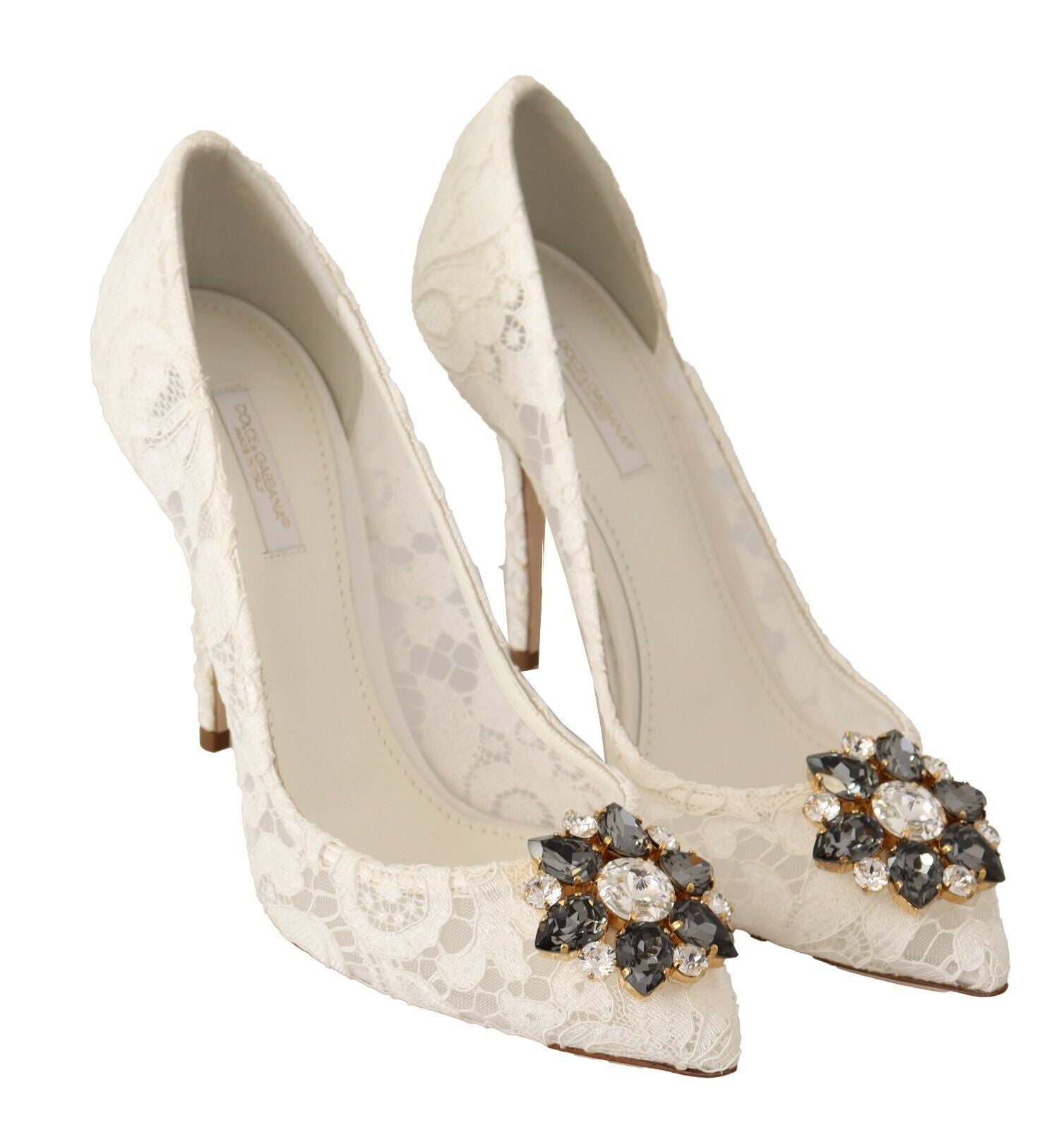 Indulge in the opulence of Dolce & Gabbana’s taormina lace heels pumps, adorned with exquisite clear and gray crystal embellishments. These luxurious heels are a testament to Italian craftsmanship and are perfect for elevating any ensemble. Boasting an intricate lace design, these heels come with a leather bottom sole and the iconic logo details, making them a must-have for the discerning fashion enthusiast.