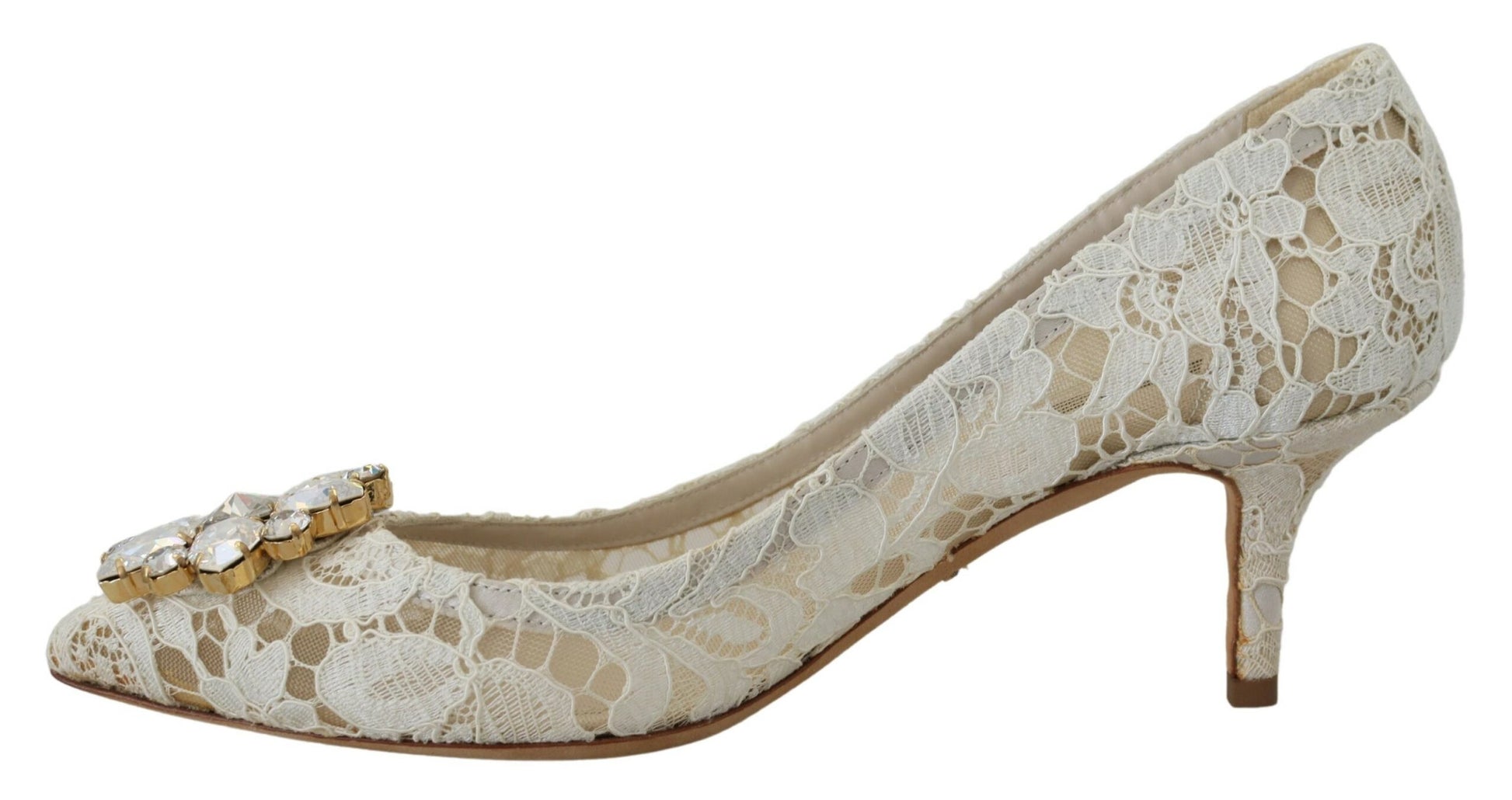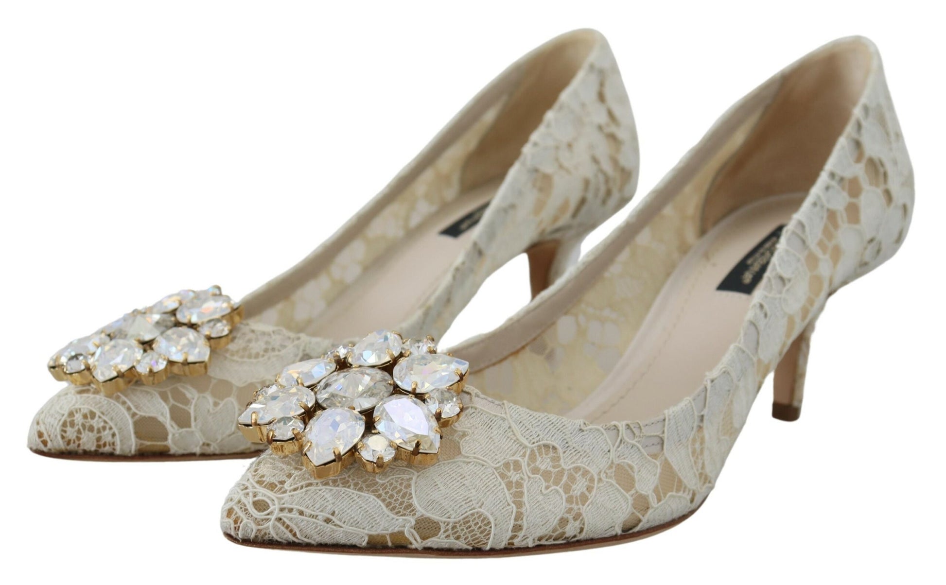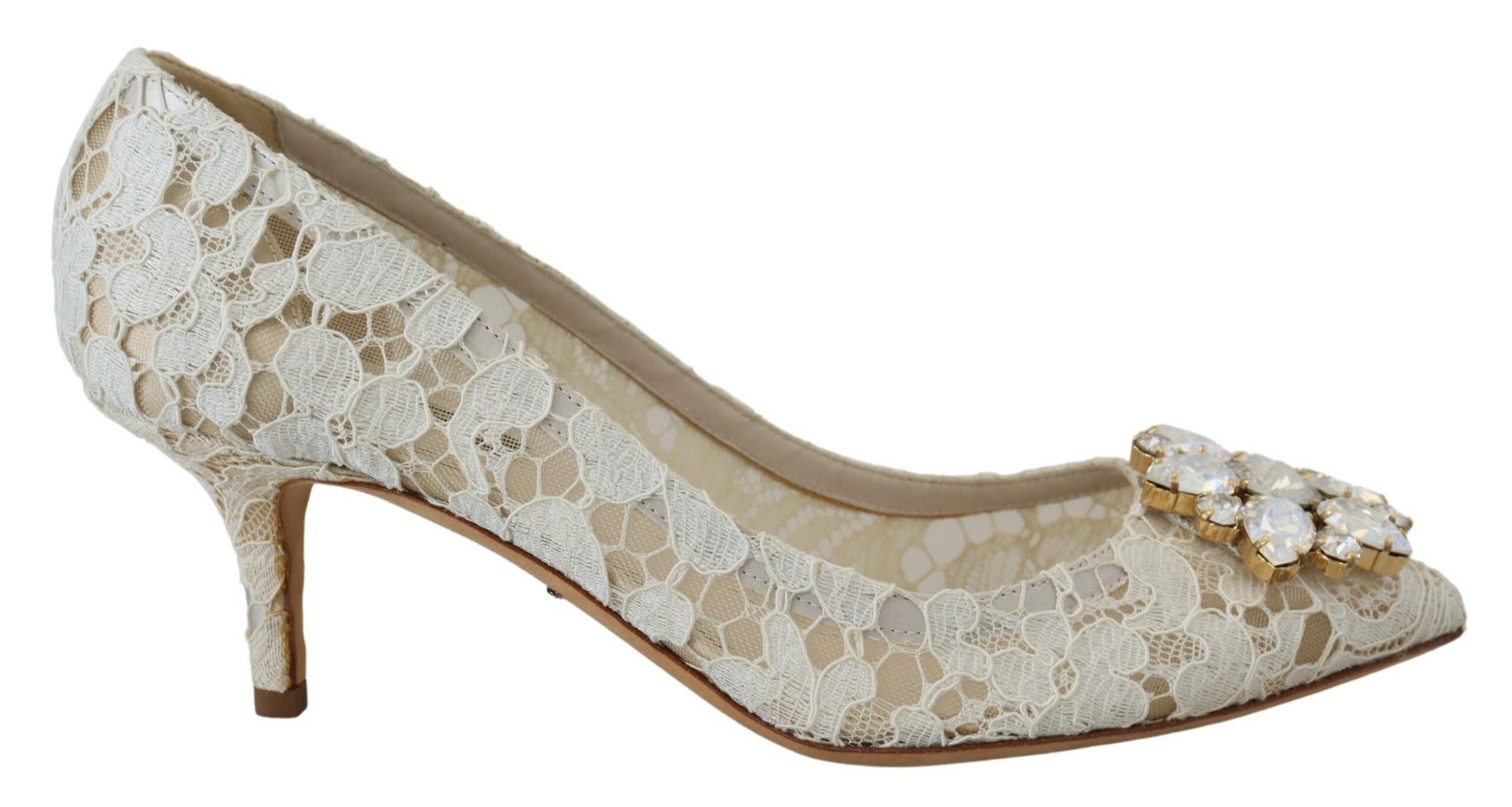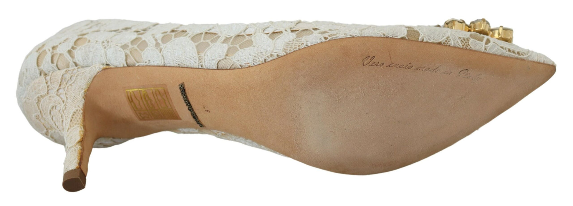 Indulge in the exquisite elegance of Dolce & Gabbana’s Taormina lace heels, a luxurious pair of pumps that dazzle with crystal embellishments. Perfect for special occasions, these heels celebrate sophistication with their intricate lace detailing and sparkling adornments, all while offering the exceptional comfort of a leather sole. Handcrafted in Italy, these pumps epitomize high-fashion allure.