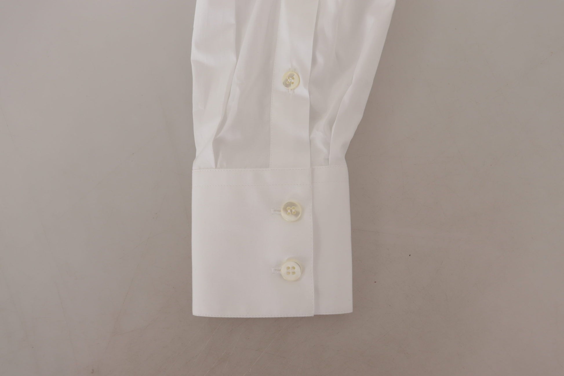 Indulge in the epitome of sophistication with this pristine white button-front shirt from the renowned fashion house, Dolce & Gabbana. This brand new, tagged, 100% authentic top brings a touch of Italian luxury to your formal wardrobe. Perfectly tailored to enrich any outfit, it reflects the brand’s commitment to the finest craftsmanship.