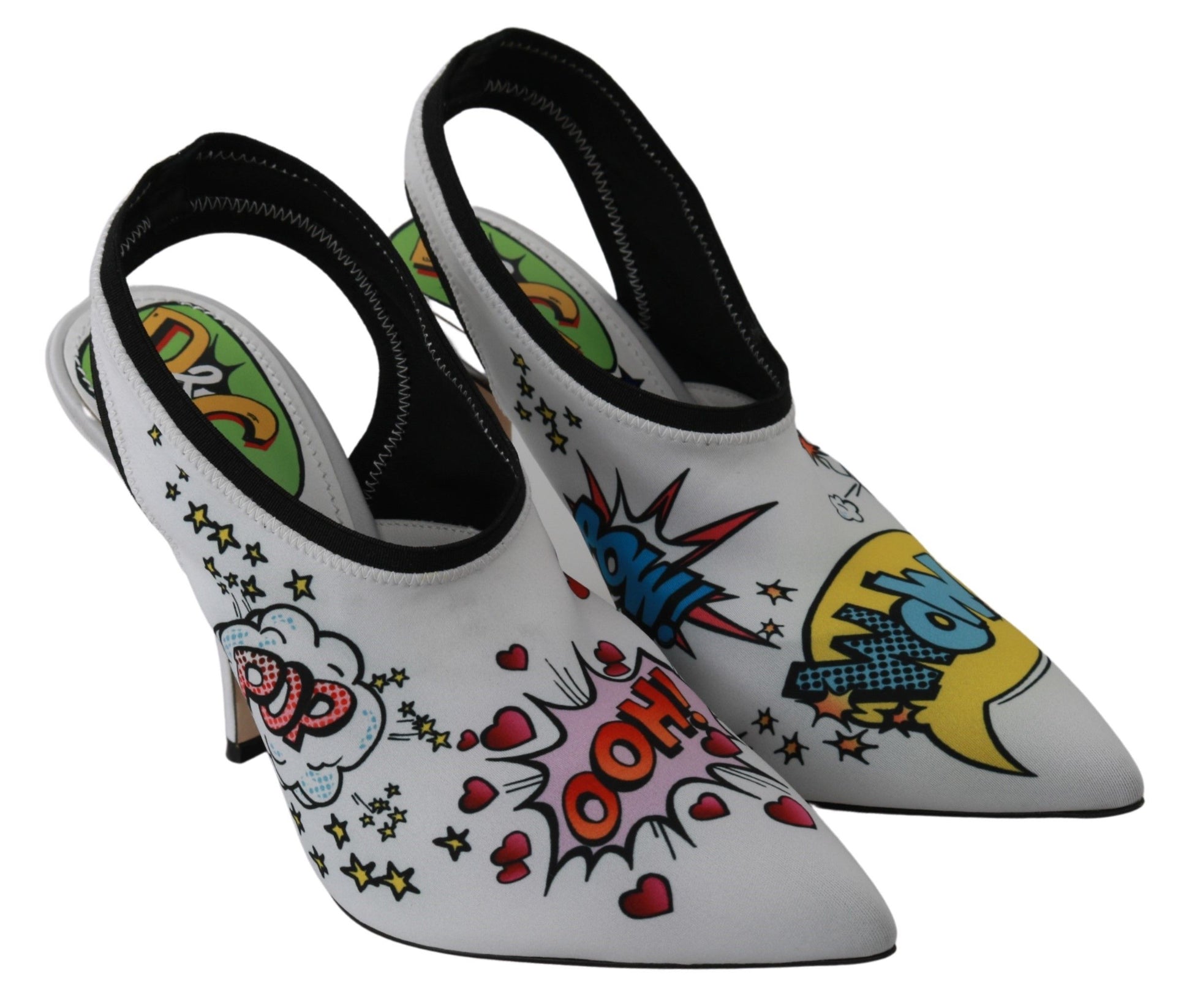 Step out in style with these eye-catching Dolce & Gabbana Slingback Pumps, perfect for adding a vibrant splash to your ensemble. With their pointed toes and stunning ‘WOW’ motif, these pumps are sure to make a statement wherever you go. Crafted with a luxurious blend of materials and a comfortable leather sole, these Italian-made shoes are a testament to exquisite craftsmanship.