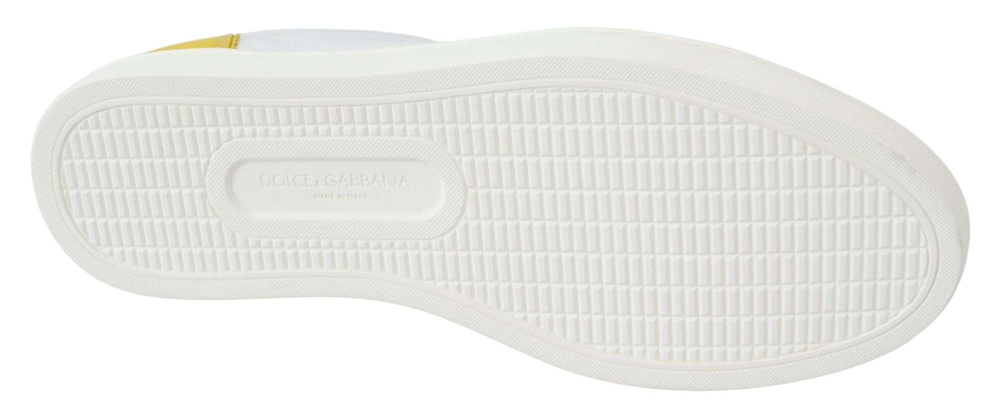 Step out in style with these stunning Dolce & Gabbana low-top sneakers, brand new with tags. Perfect for fashion-forward individuals seeking a blend of luxury and comfort. These sneakers feature a sleek white and yellow design, made from the finest 100% leather, and finished with the iconic brand logo. The durable rubber sole ensures lasting wear. Made in Italy, these sneakers are a true testament to high fashion craftsmanship.