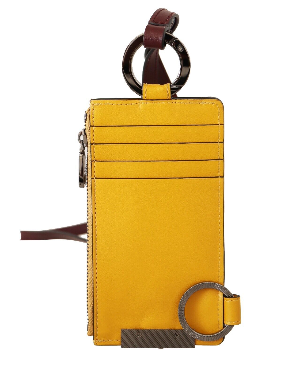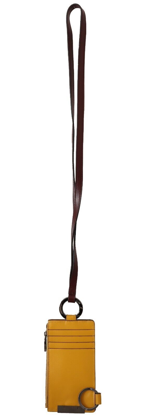 Step up your accessory game with this stunning new card holder by Dolce & Gabbana. Crafted with premium quality leather, the gorgeous yellow hue will add a pop of color to your ensemble. Featuring a convenient neck strap and secure zipper closure, this card holder wallet marries style with practicality. Made in Italy, it’s an exquisite blend of luxury and functionality, perfect for the fashion-forward individual.