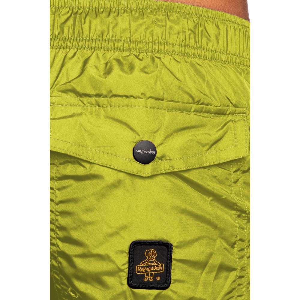 Dive into the summer spirit with Refrigiwear’s beach short, masterfully crafted for the modern man. Embodying style and functionality, this men’s swimsuit navigates comfort and trend with its breathable nylon fabric and elastic waistband with drawstring. Ideal for on-the-go adventurers, it folds into an internal zip pocket, ensuring sleek portability. Accented with a subtle logo patch and a vibrant yellow color, it’s the quintessential addition to your swimwear collection.