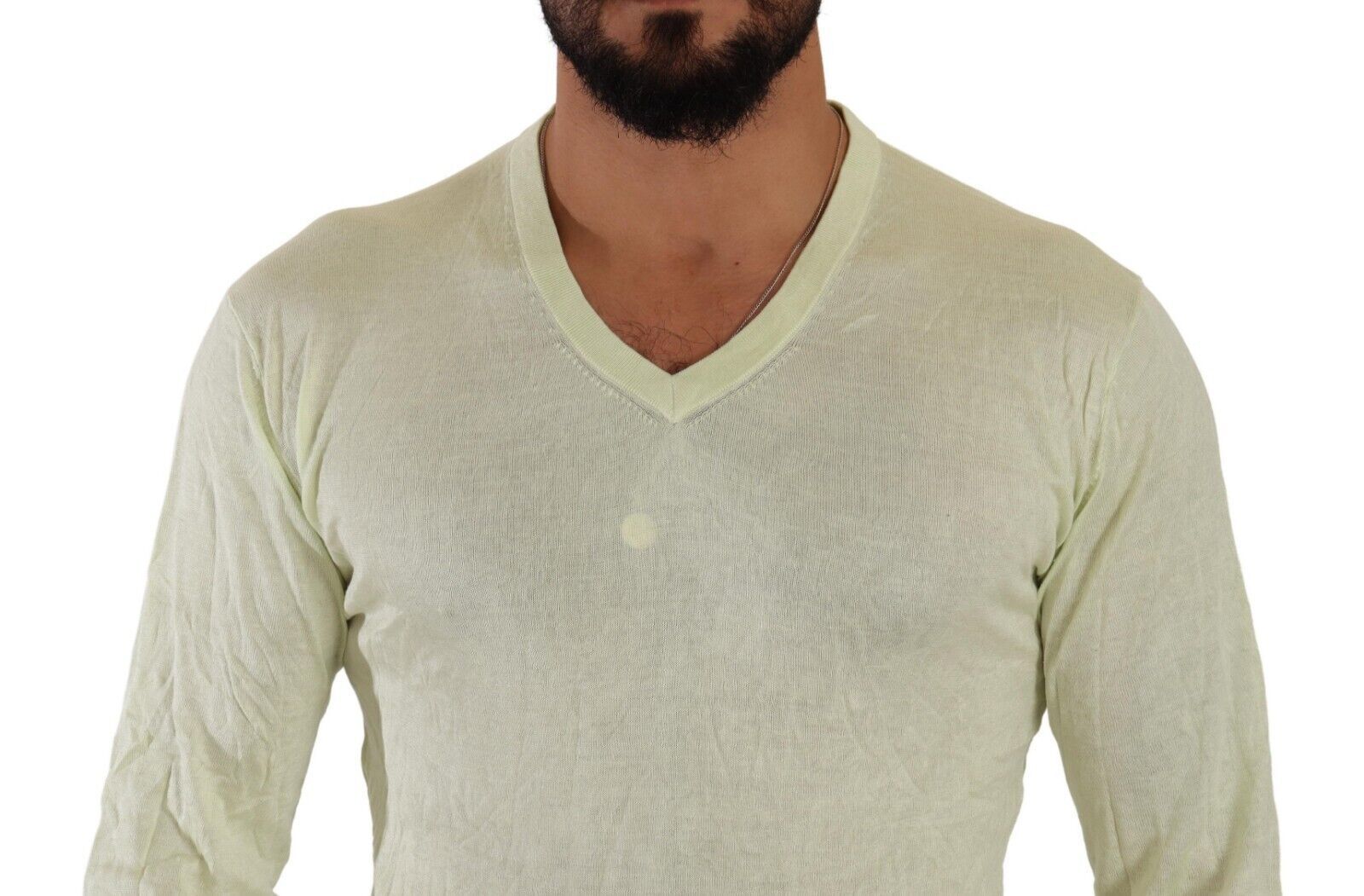 Experience unparalleled sophistication with this 100% Authentic Domenico Tagliente v-neck pullover sweater. Designed for those who appreciate the finer things, this light yellow sweater is perfect for adding a touch of elegance to any outfit. Look and feel stunning with signature logo details, all while enjoying the luxurious comfort of pure silk. A must-have for the discerning gentleman.